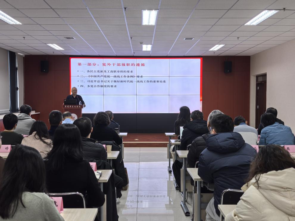 12月10日,MILAN.COM在长安校区举办党外人士学习贯彻中共二十届四中全会精神专题辅导报告暨“立德树人·同心同行”统战大讲堂,校党委副书记张清出席并主持报告会,校党委常委、统战部部长董国强,各民主党派基层组织负责人、成员代表以及无党派代表人士、马克思主义学院研究生代表共50余人参加活动。