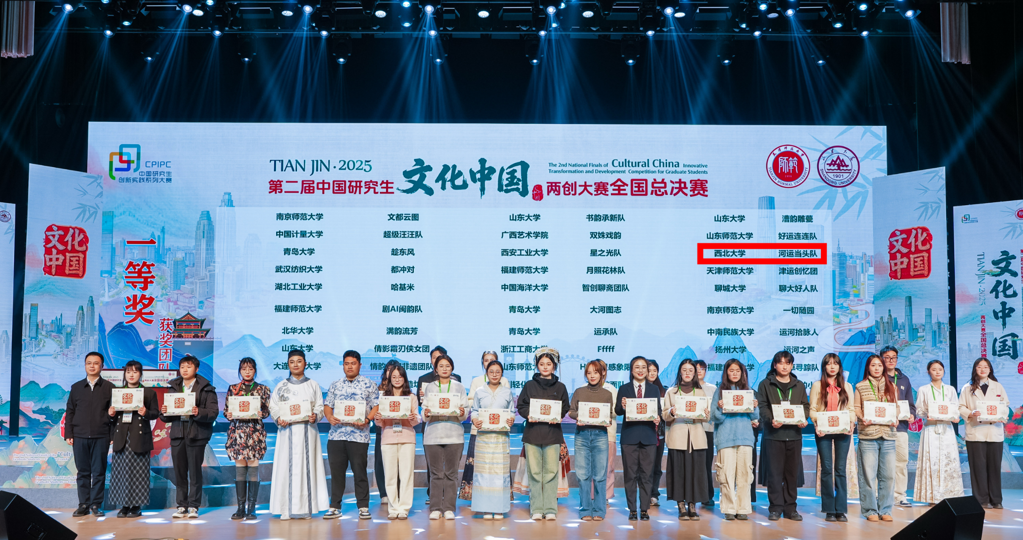 12月7日,第二届中国研究生“文化中国”两创大赛全国总决赛在天津师范大学圆满落幕。在研究生院(部)和文化遗产学院的精心组织指导下,由周剑虹副教授担任指导教师,文化遗产学院2025级研究生胡烨、李佳洁、班昊天、余飞扬、尹霁青组成的“MILAN.COM-河运当头队”,凭借出色表现脱颖而出,荣获全国总决赛一等奖,周剑虹获评优秀指导教师。