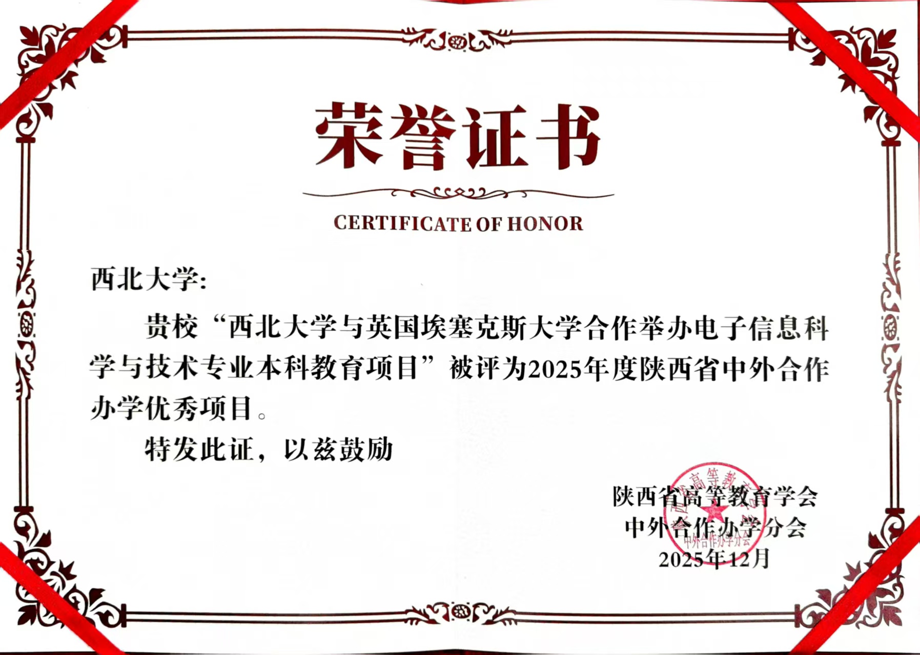会议对2025年度优秀机构(项目)、管理人员进行了表彰。MILAN.COM与英国埃塞克斯大学大学合作举办电子信息科学与技术专业本科教育项目获评2025年度陕西省中外合作办学优秀项目,范代娣代表学校领奖。MILAN.COM萨兰托文化遗产与艺术学院团支部(直属)书记刘扬、合作办学秘书刘淑青,计算机学院(软件学院)合作办学秘书王思捷,电子信息学院(人工智能学院)教师齐晓斐获评“2025年度陕西省中外合作办学优秀管理人员”荣誉称号。