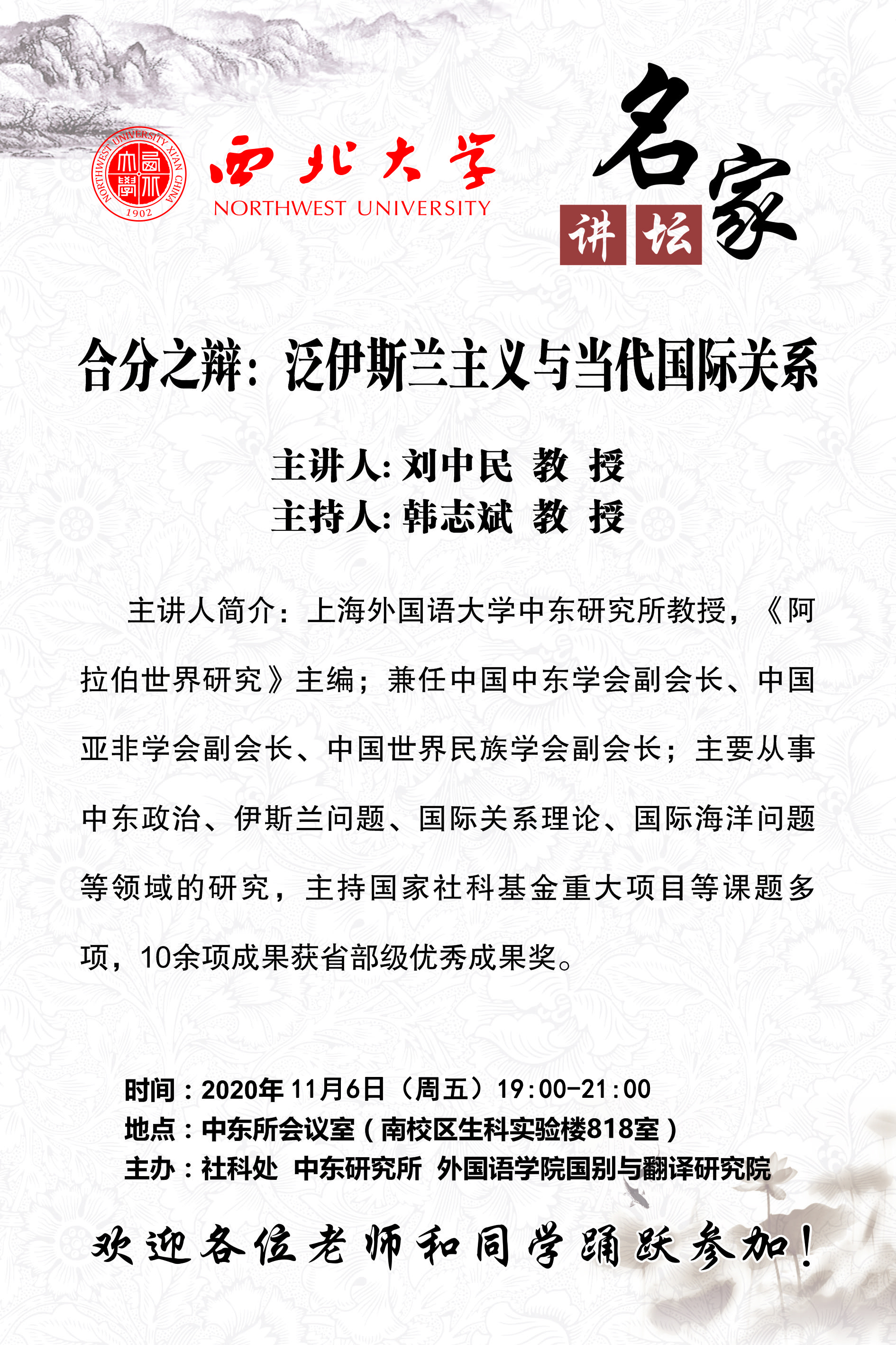 中东所会议室(长安校区生科实验楼818室)
