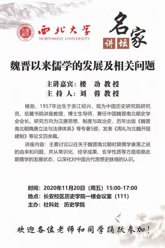 名家讲坛:魏晋以来儒学的发展及相关问题