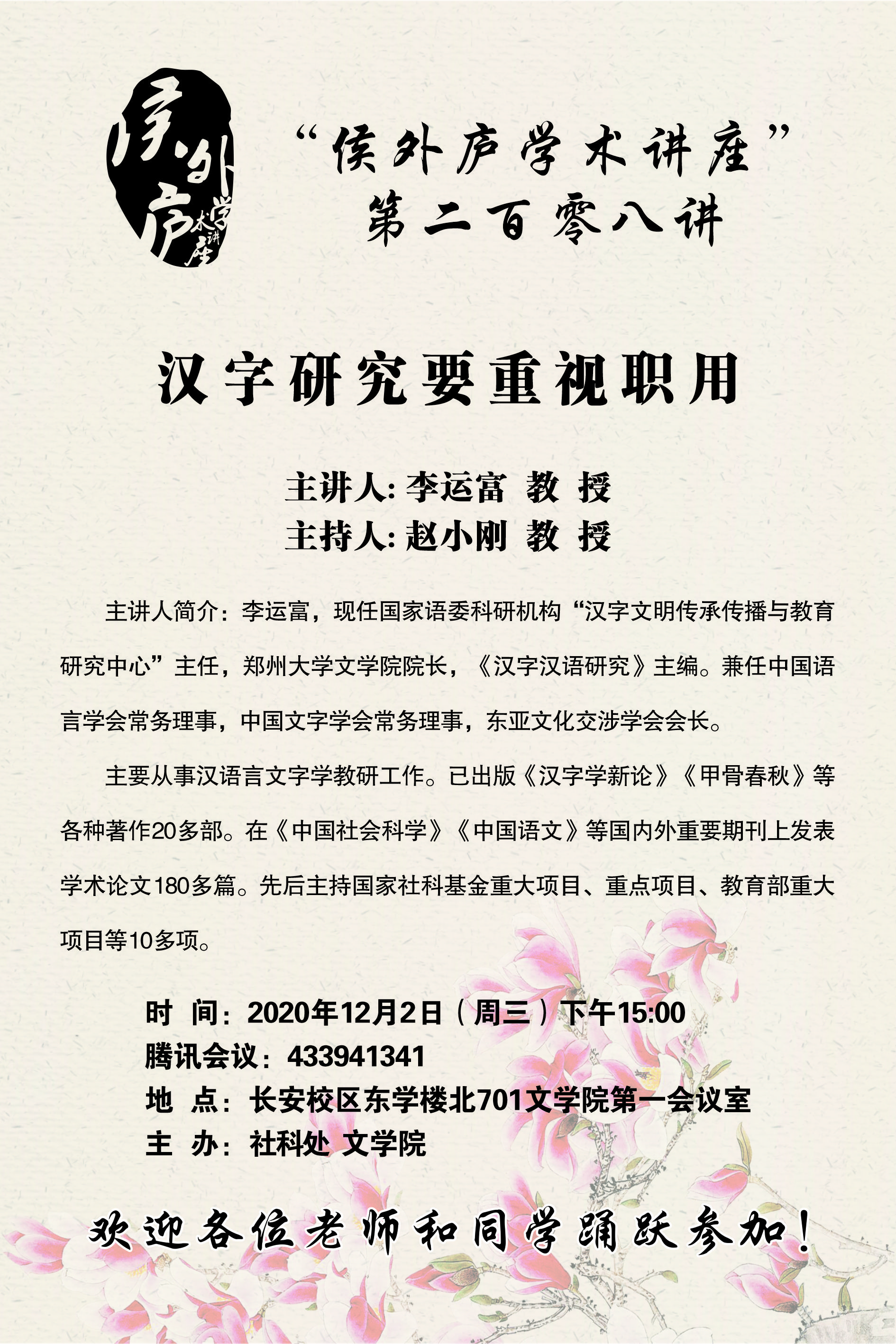 侯外庐学术讲座第二百零八讲:汉字研究要重视职用