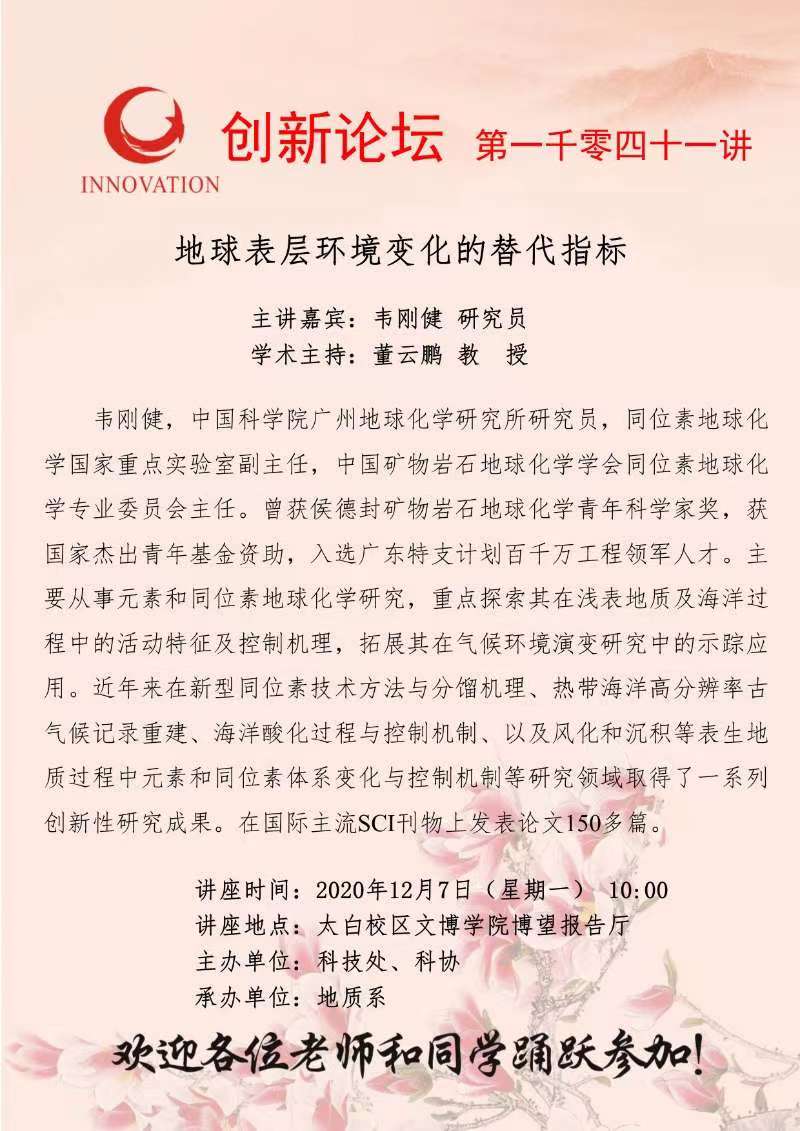 韦刚健 研究员 MILAN.COM创新论坛第一千零四十一讲:地球表层环境变化的替代指标 讲座时间 2020年12月7日(星期一) 10:00 讲座地点 太白校区文博学院博望报告厅 讲座人介绍 韦刚健 研究员 讲座内容