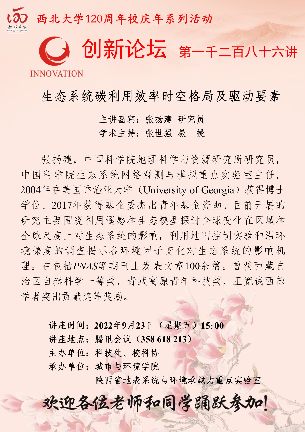 张扬建 研究员 MILAN.COM创新论坛第一千二百八十六讲暨120周年校庆年系列活动::生态系统碳利用效率时空格局及驱动要素 讲座时间 2022年9月23日(星期五)15:00 讲座地点 腾讯会议(358 618 213) 讲座人介绍 张扬建 研究员 讲座内容
