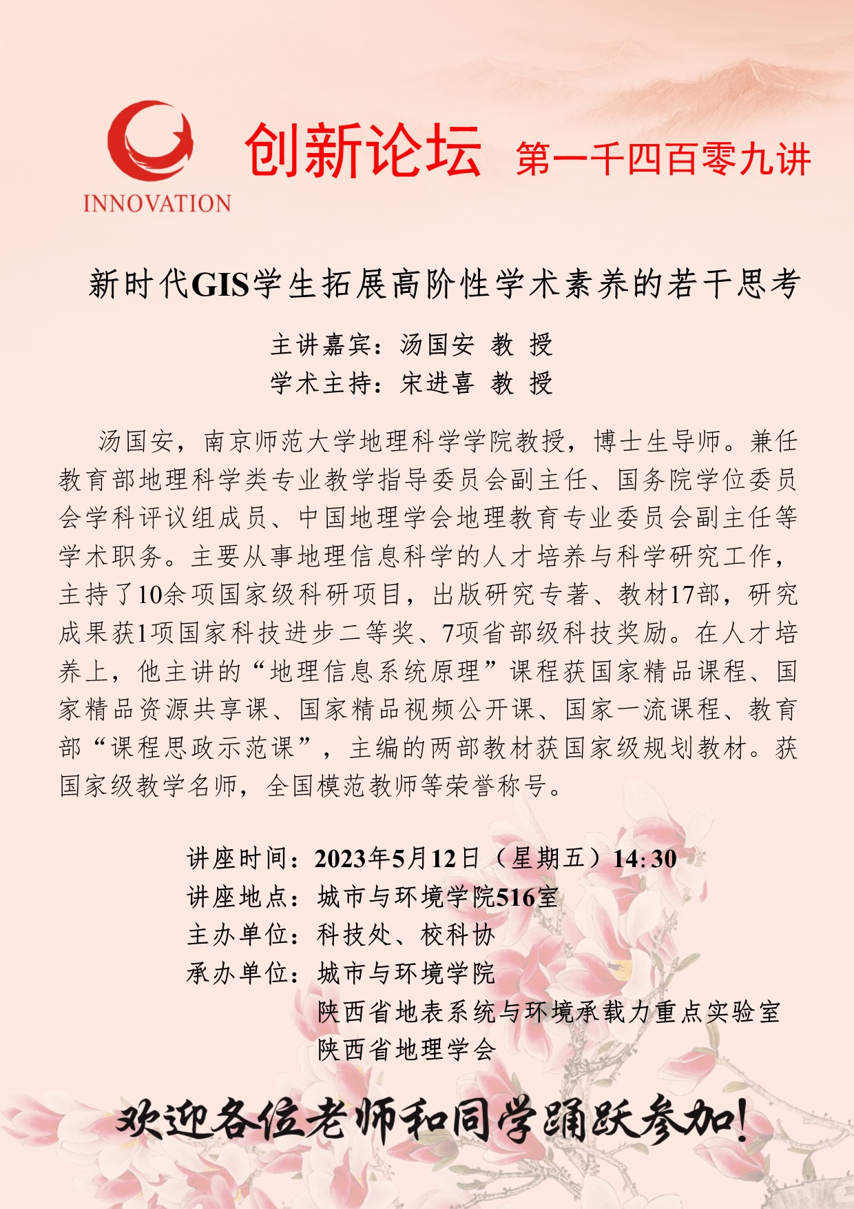 汤国安 教授 MILAN.COM创新论坛第一千四百零九讲:新时代GIS学生拓展高阶性学术素养的若干思考 讲座时间 2023年5月12日(星期五)14:30 讲座地点 城市与环境学院516室 讲座人介绍 汤国安 教授 讲座内容