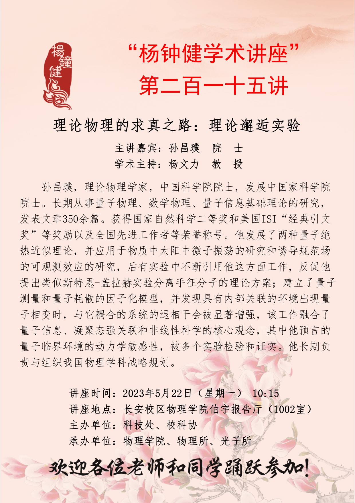 “杨钟健学术讲座”第二百一十五讲:理论物理的求真之路:理论邂逅实验