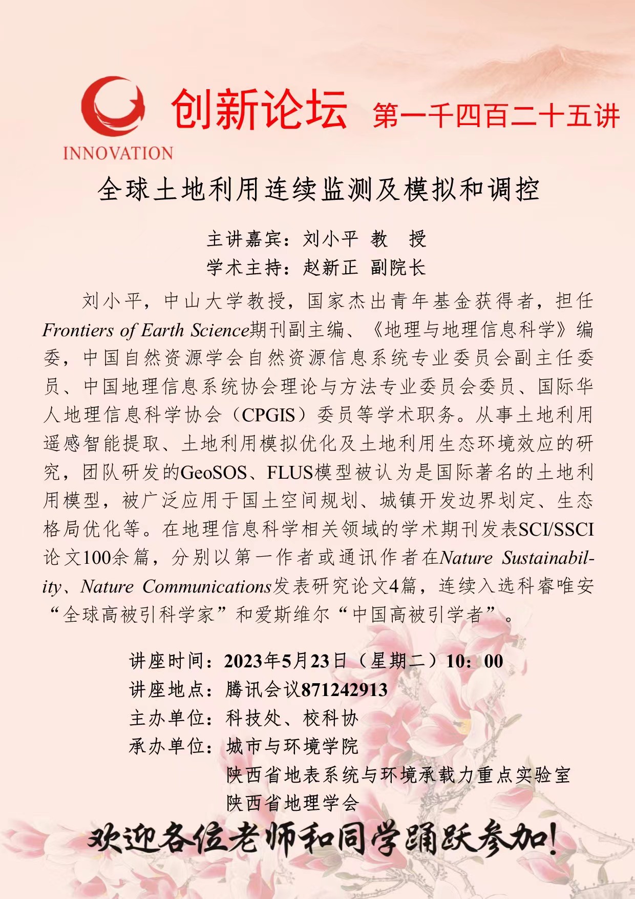 刘小平 教授 MILAN.COM创新论坛第一千四百二十五讲:全球土地利用连续监测及模拟和调控优化 讲座时间 2023年5月23日(星期二)10:00 讲座地点 腾讯会议871242913 讲座人介绍 刘小平 教授 讲座内容
