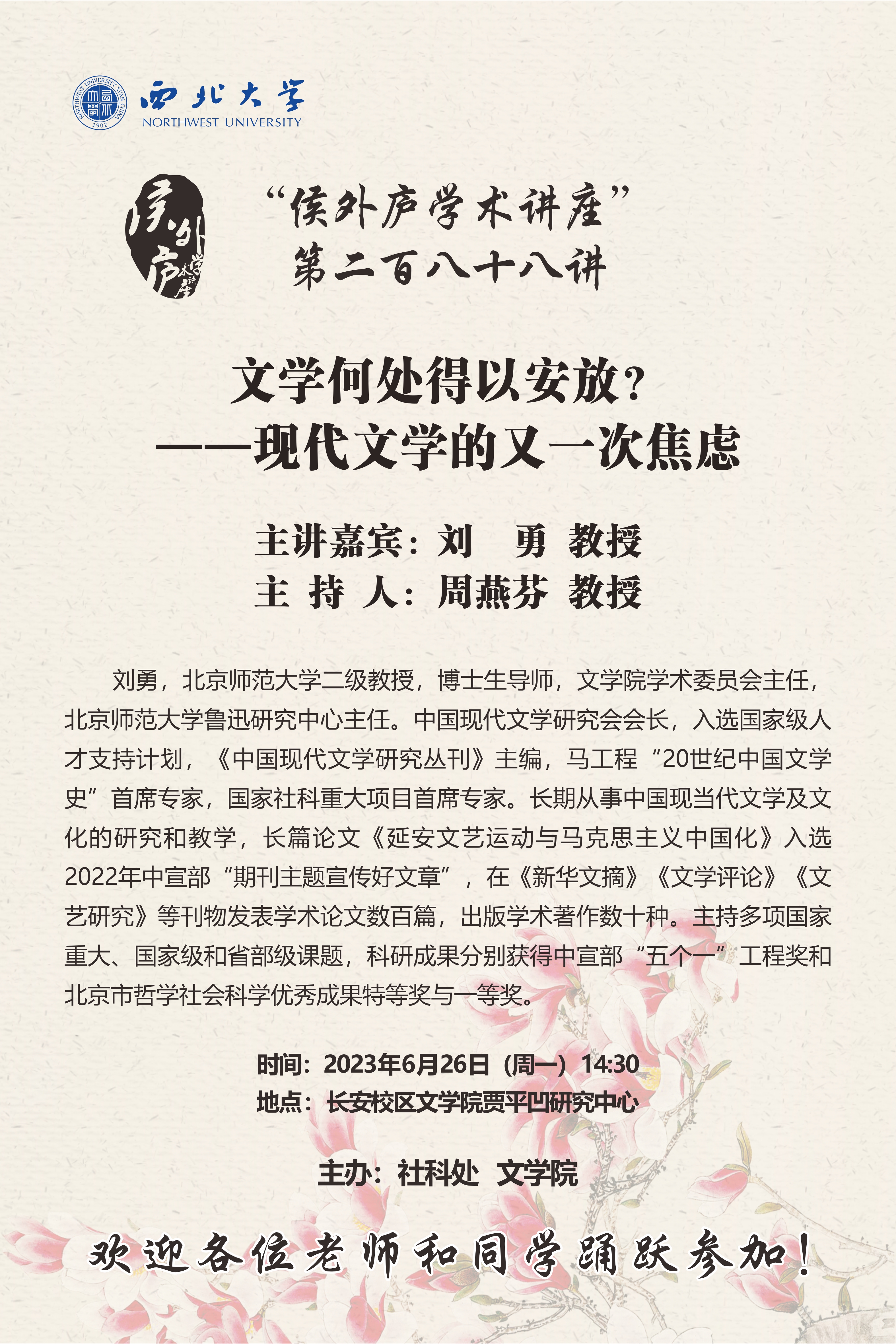 侯外庐学术讲座第二百八十八讲:文学何处得以安放?——现代文学的又一次焦虑
