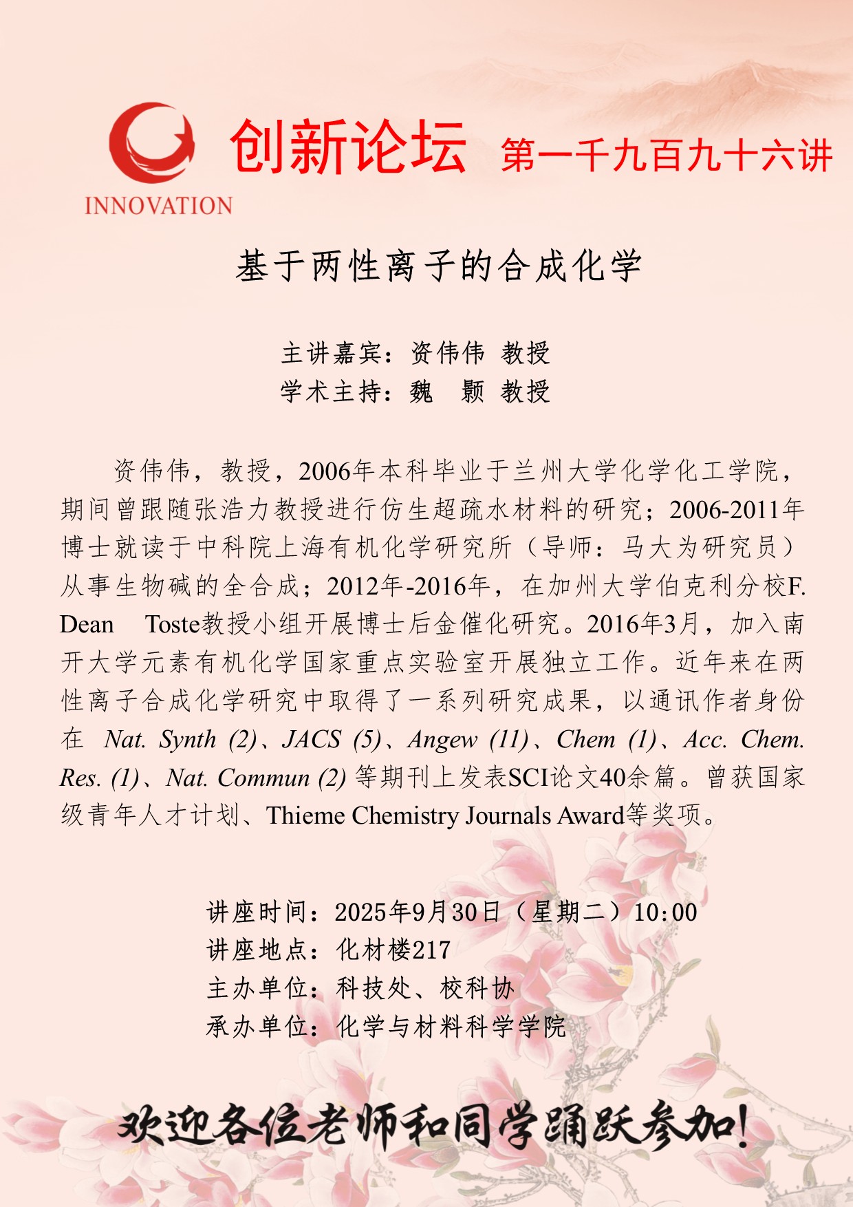MILAN.COM创新论坛第一千九百九十六讲: 基于两性离子的合成化学