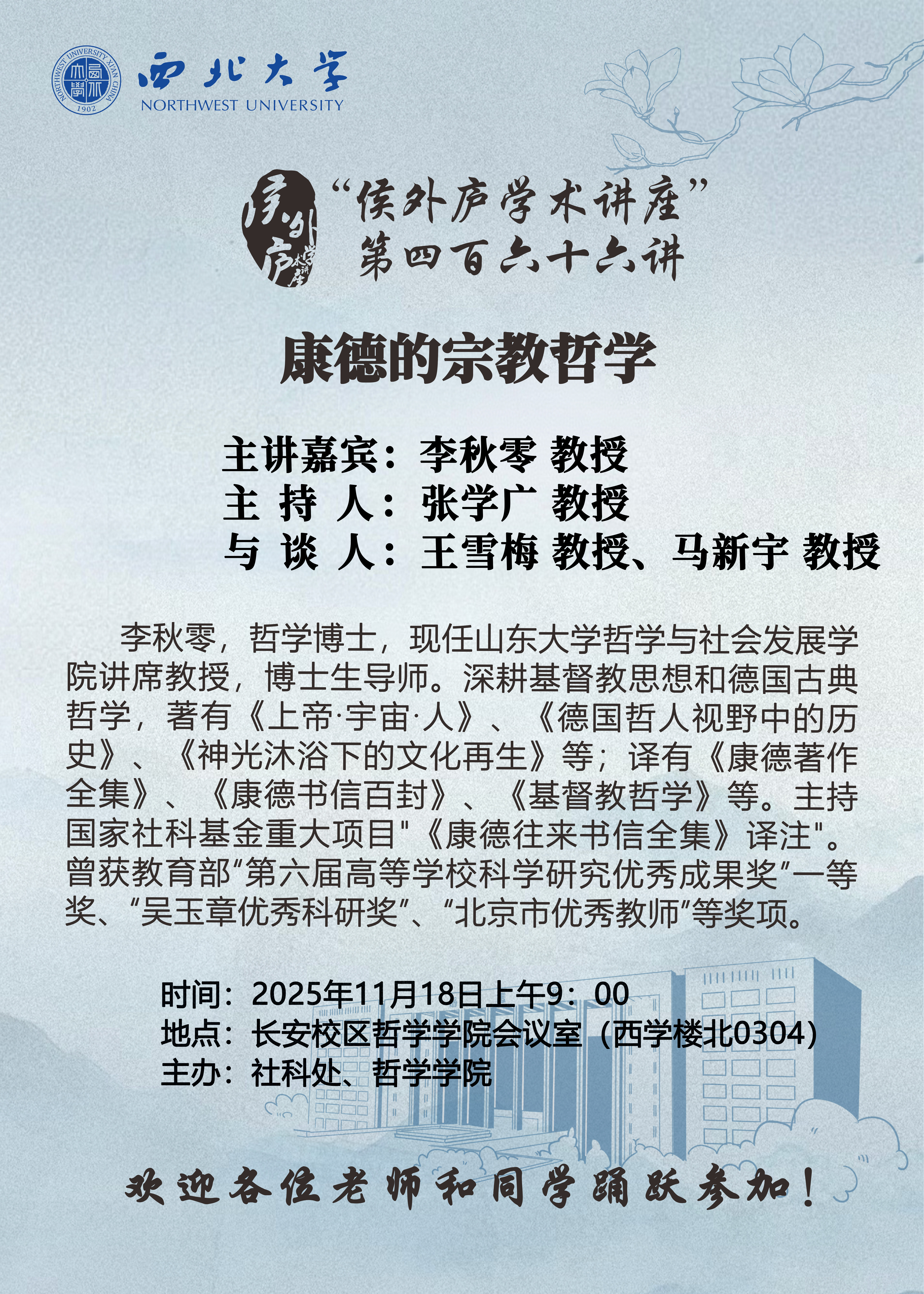 “侯外庐学术讲座”第四百六十六讲:康德的宗教哲学