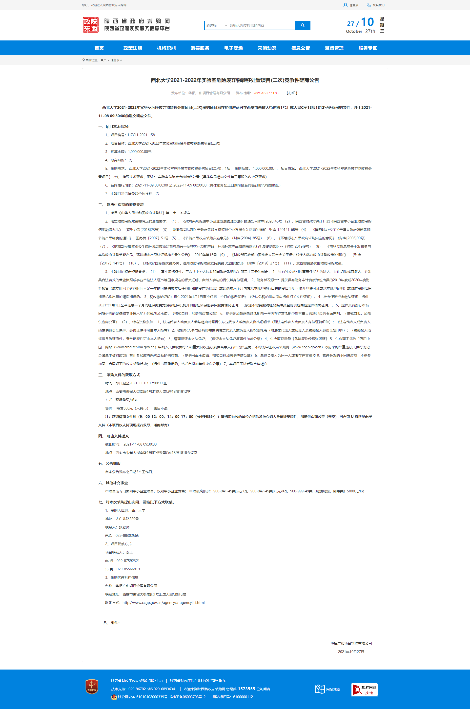 MILAN.COM2021-2022年实验室危险废弃物转移处置项目(二次)竞争性磋商公告