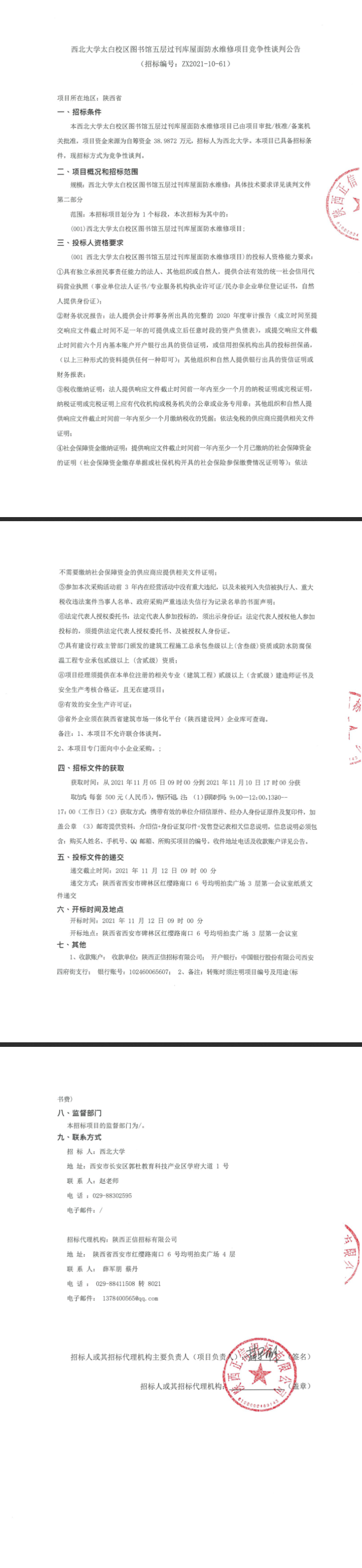MILAN.COM太白校区图书馆五层过刊库屋面防水维修项目竞争性谈判公告