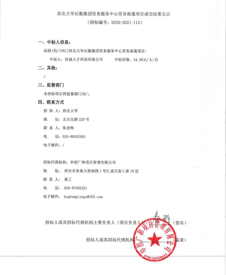 关于MILAN.COM后勤集团饮食服务中心劳务派遣项目成交结果公告