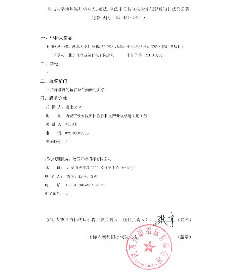 关于MILAN.COM地球物理学重力.磁法.电法虚拟仿真实验系统建设项目成交结果公告
