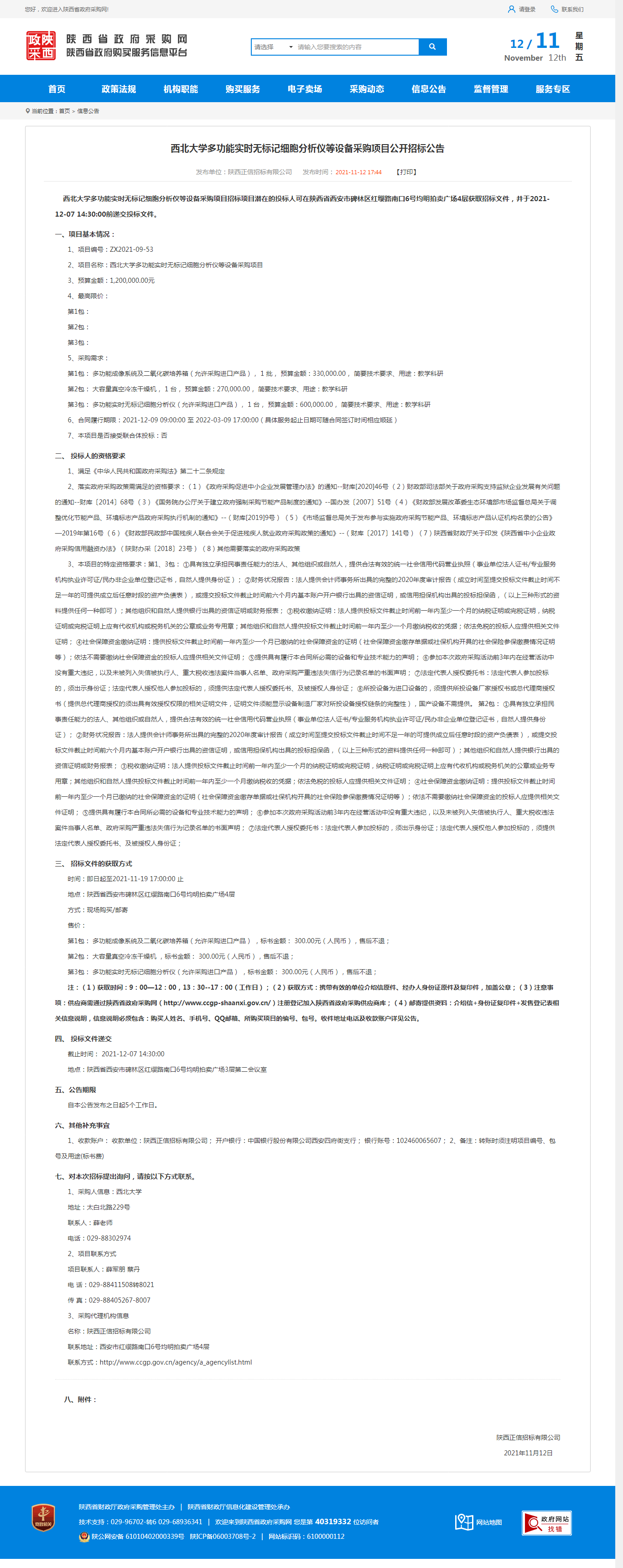 MILAN.COM多功能实时无标记细胞分析仪等设备采购项目公开招标公告 作者: 编辑:薛利娟 时间:2021-11-12 原公告网址:http://www.ccgp-shaanxi.gov.cn/notice/noticeDetail.do?noticeguid=8a85be337cefc032017d13792f9f29a1