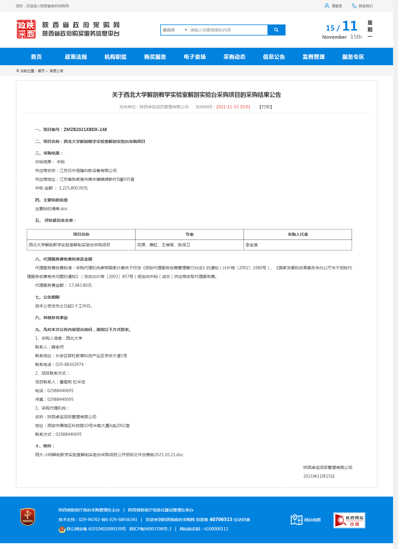 关于MILAN.COM解剖教学实验室解剖实验台采购项目的采购结果公告 作者: 编辑:薛利娟 时间:2021-11-15 原公告网址:http://www.ccgp-shaanxi.gov.cn/notice/noticeDetail.do?noticeguid=8a85be347cefc0a5017d2265933b409c