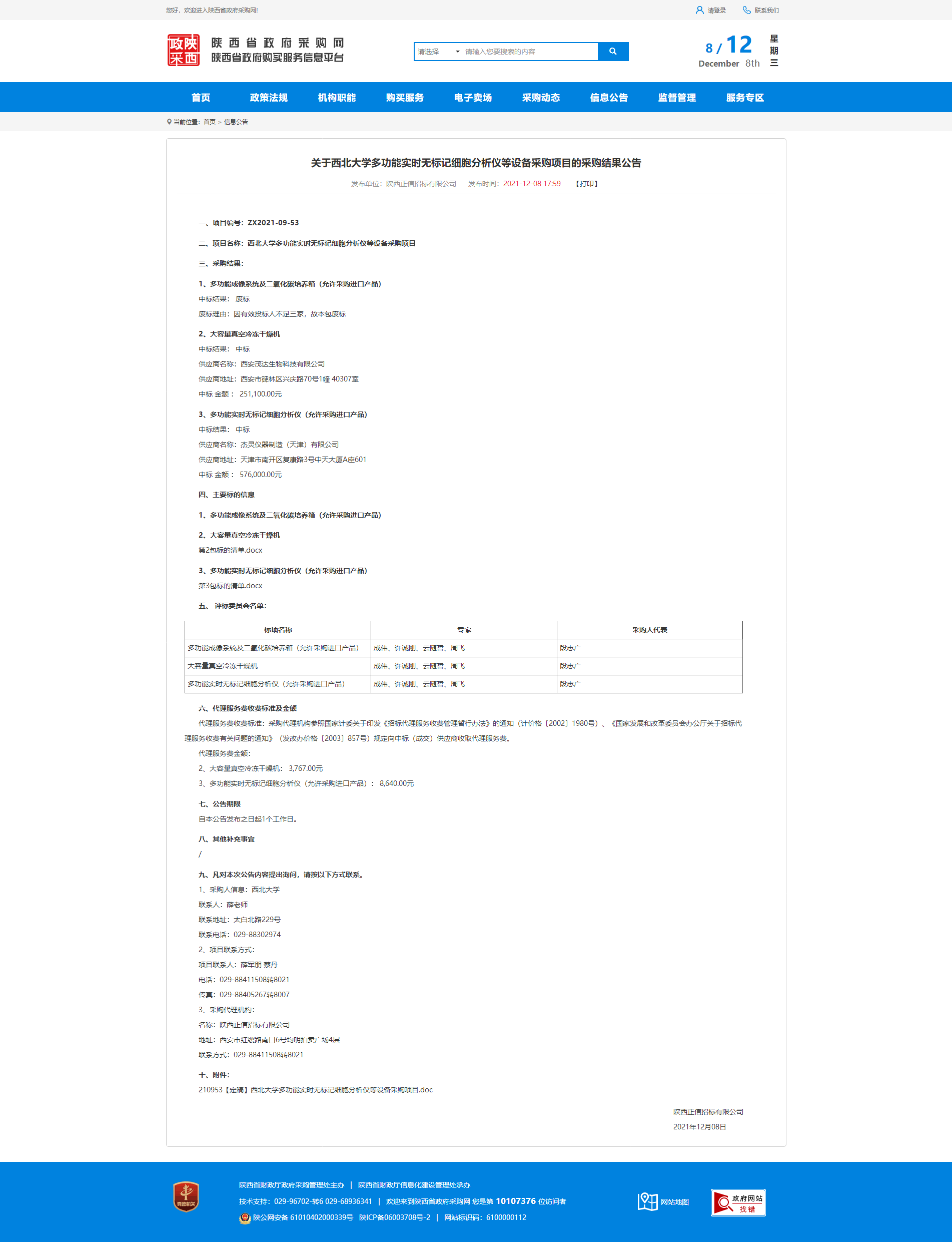 关于MILAN.COM多功能实时无标记细胞分析仪等设备采购项目的采购结果公告