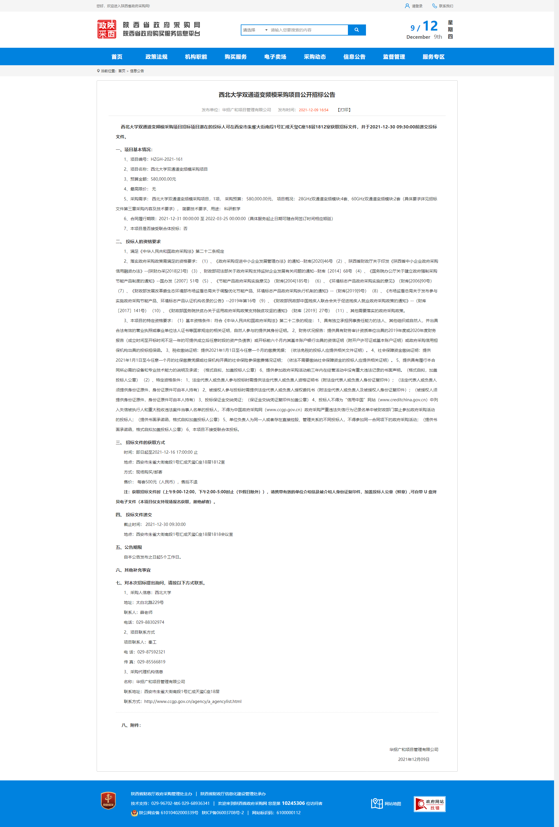 MILAN.COM双通道变频模采购项目公开招标公告 作者: 编辑:薛利娟 时间:2021-12-10 原公告链接:http://www.ccgp-shaanxi.gov.cn/notice/noticeDetail.do?noticeguid=8a85be317d6a7607017d9e5c471d71a6