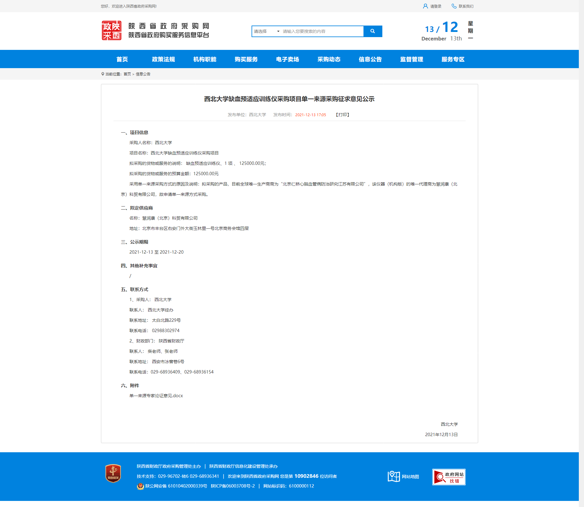 MILAN.COM缺血预适应训练仪采购项目单一来源采购征求意见公示 作者: 编辑:薛利娟 时间:2021-12-13 原公告链接:http://www.ccgp-shaanxi.gov.cn/notice/noticeDetail.do?noticeguid=8a85be337dace9ea017db302988240e3