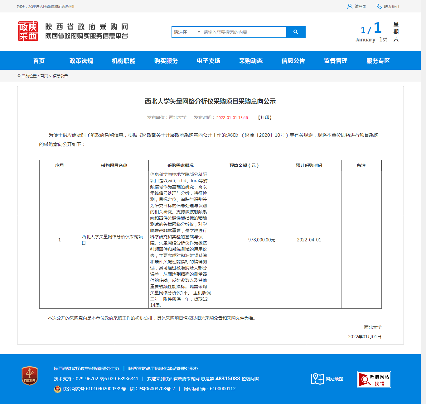 MILAN.COM矢量网络分析仪采购项目采购意向公示 作者: 编辑:薛利娟 时间:2022-01-01 原公告链接:http://www.ccgp-shaanxi.gov.cn/notice/noticeDetail.do?noticeguid=8a85be327deba994017e1429df4c7a40