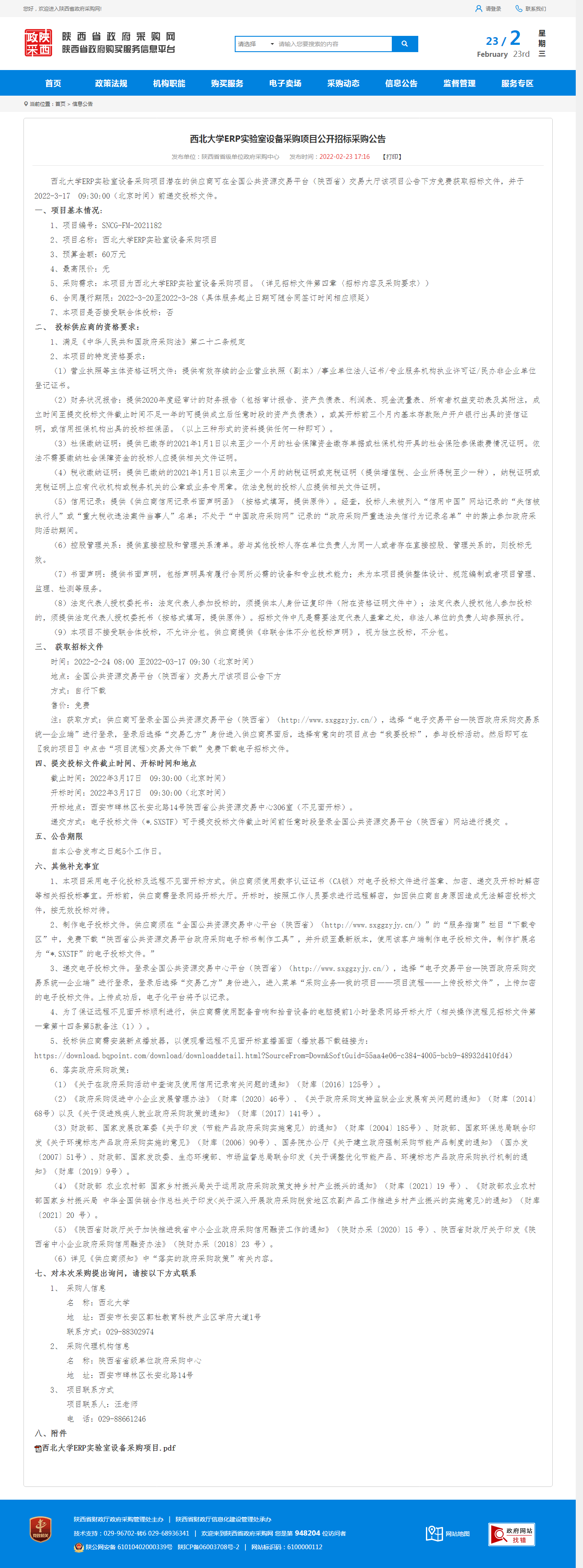 MILAN.COMERP实验室设备采购项目公开招标采购公告 作者: 编辑:薛利娟 时间:2022-02-23 原公告链接:http://www.ccgp-shaanxi.gov.cn/notice/noticeDetail.do?noticeguid=8a85be387e22c8ad017f25db42450373