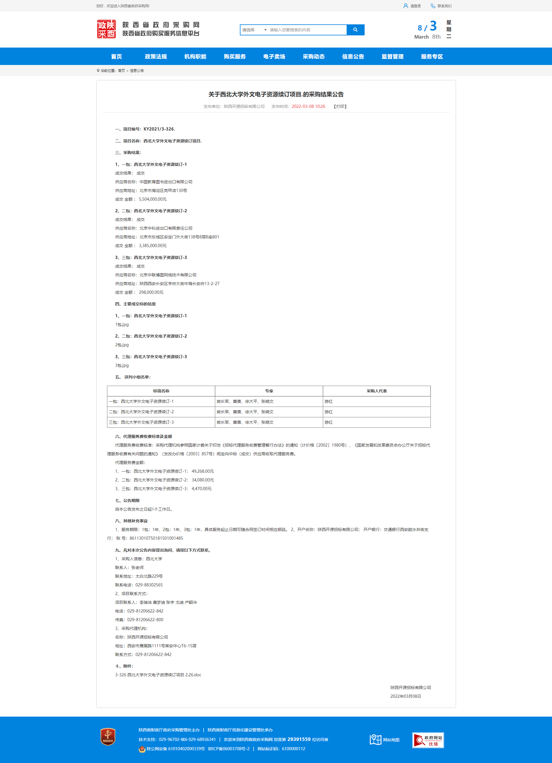 关于MILAN.COM外文电子资源续订项目的采购结果公告