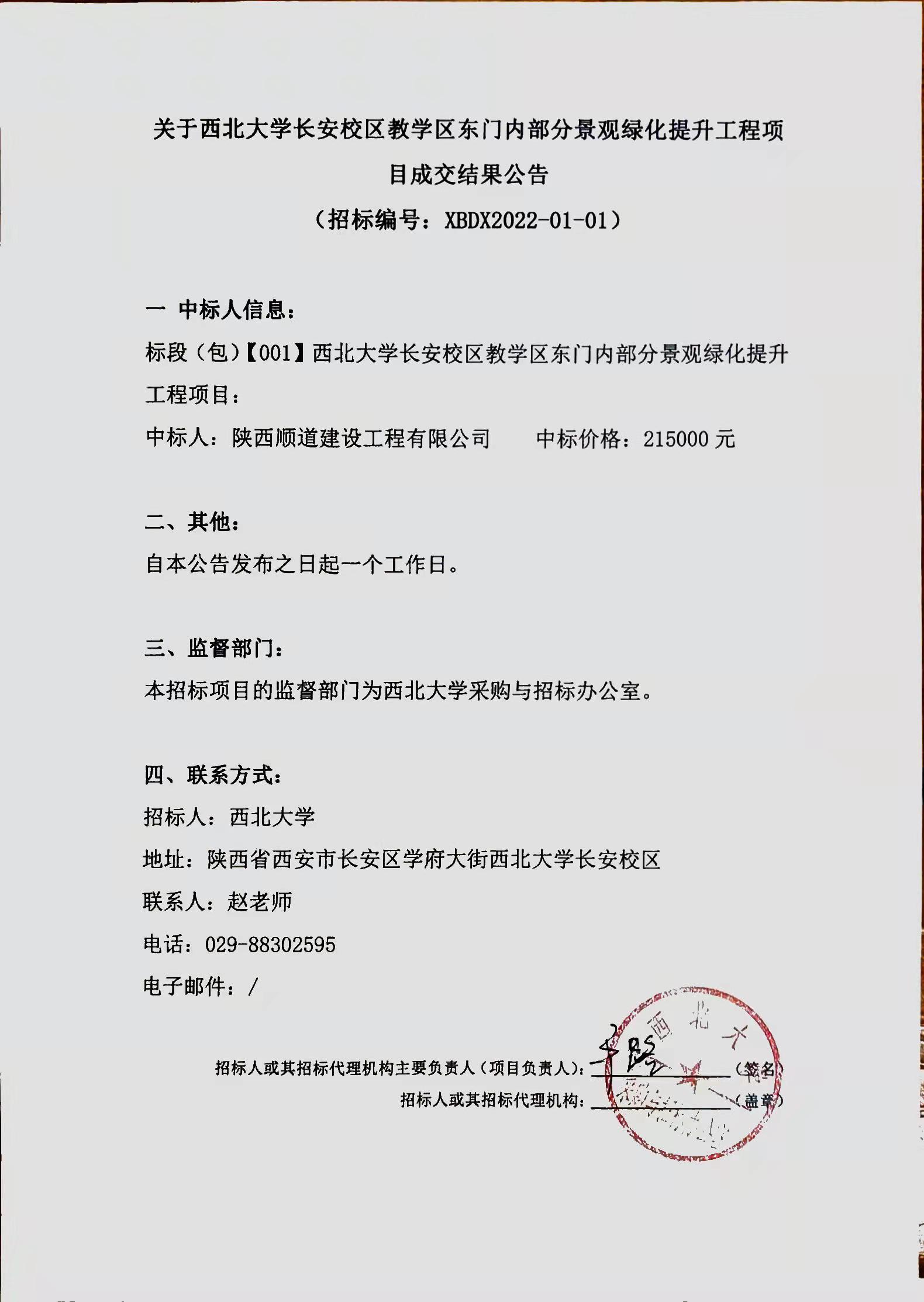 关于MILAN.COM长安校区教学区东门内部分景观绿化提升工程项目成交结果公告