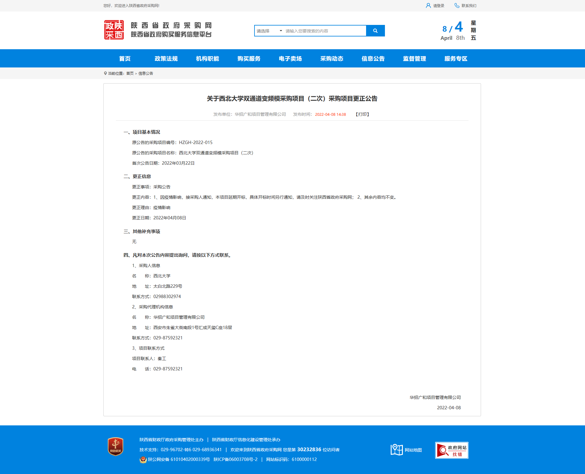 关于MILAN.COM双通道变频模采购项目(二次)采购项目更正公告 作者: 编辑:薛利娟 时间:2022-04-08 原公告链接:http://113.200.80.230/notice/noticeDetail.do?noticeguid=8a85be347fe4a76e018007e0548720b9