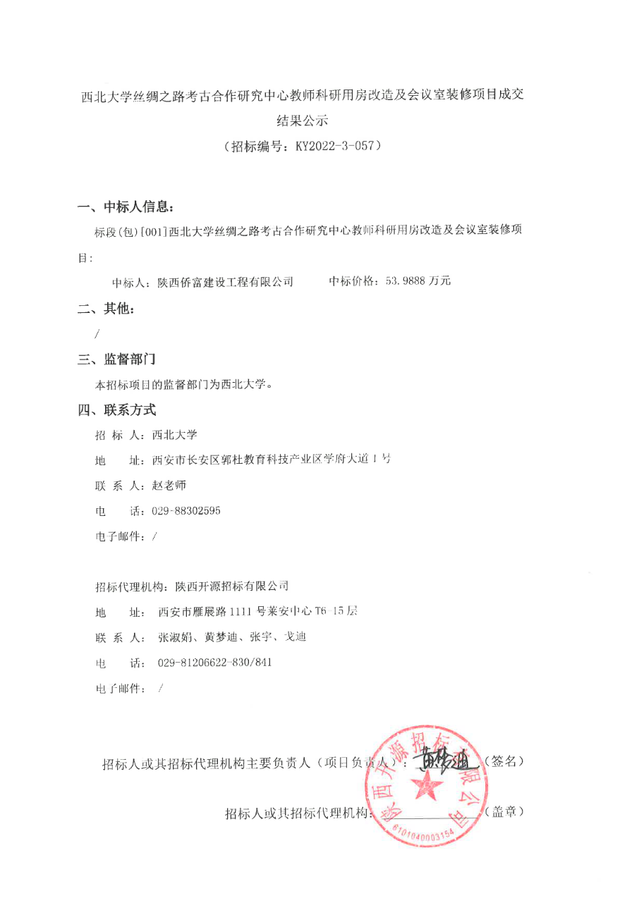 MILAN.COM丝绸之路考古合作研究中心教师科研用房改造及会议室装修项目成交结果公示