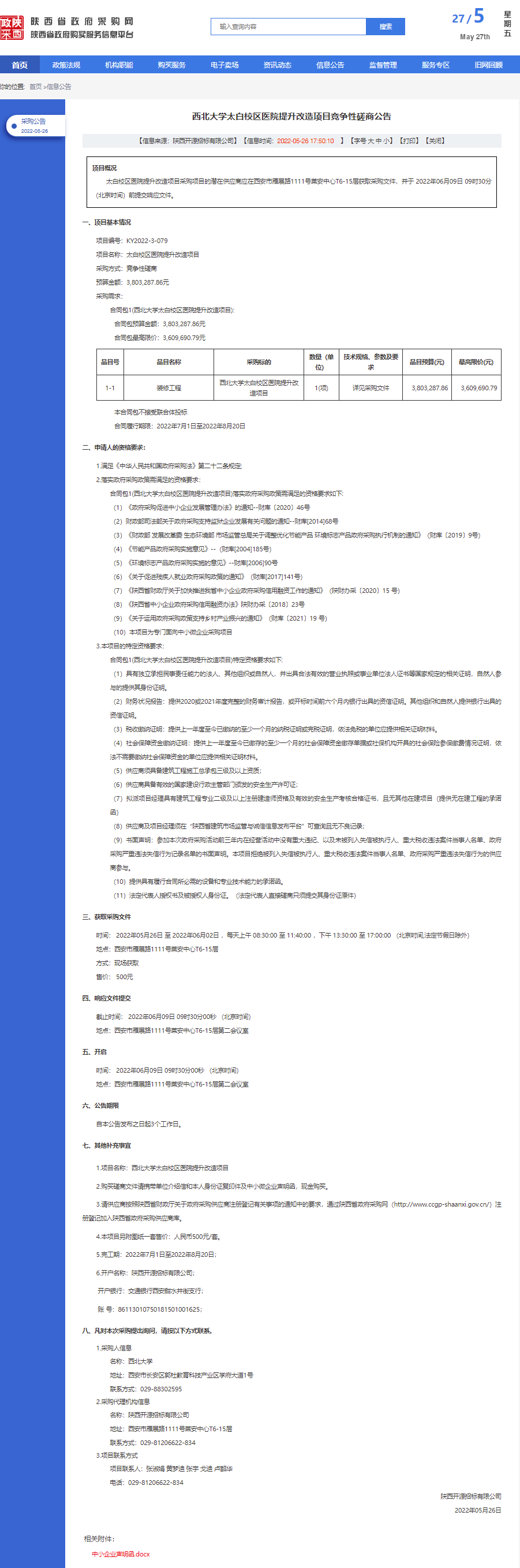 MILAN.COM太白校区医院提升改造项目竞争性磋商公告