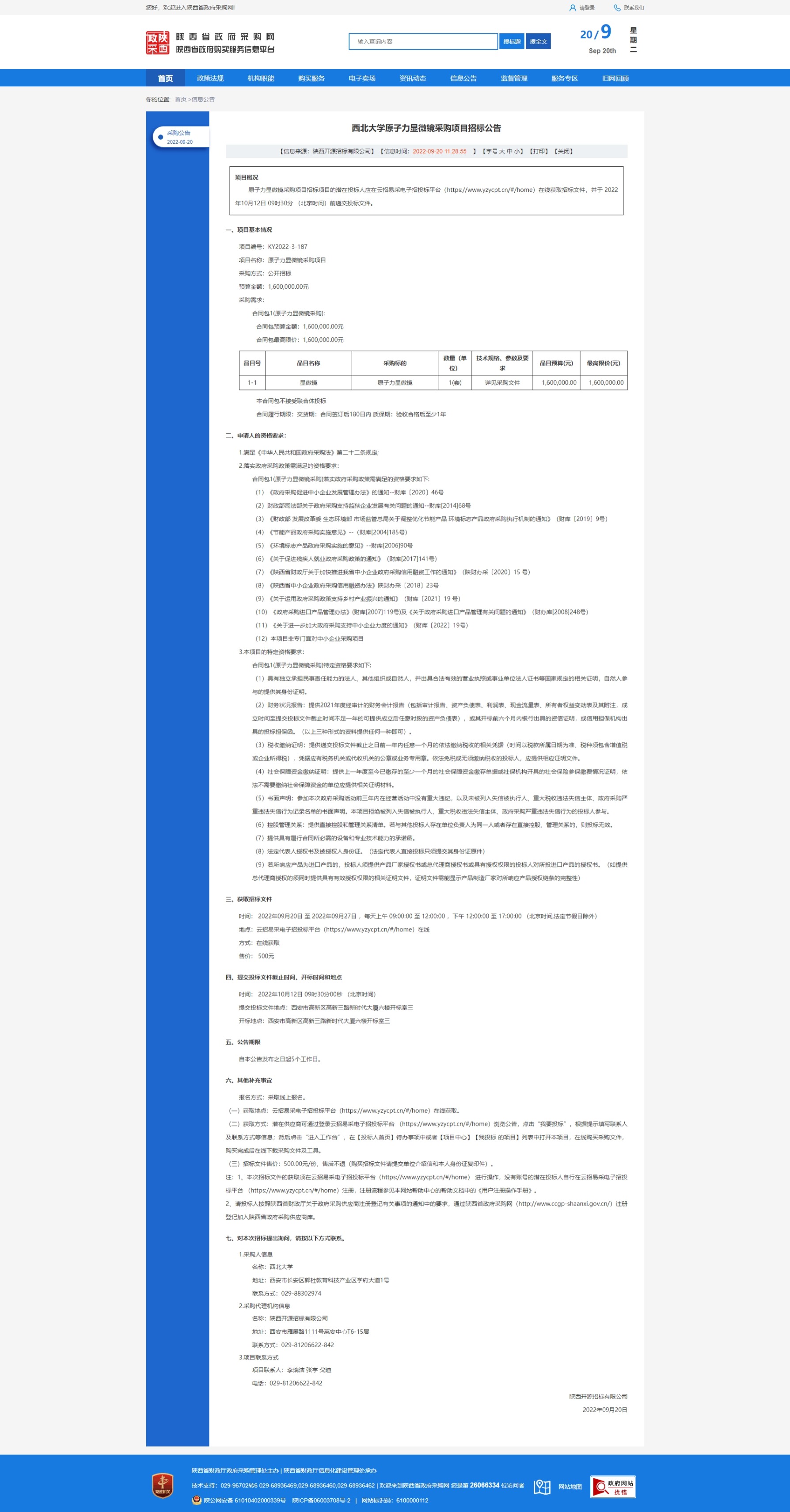 原公告链接:http://www.ccgp-shaanxi.gov.cn/freecms/site/shaanxi/ggxx/info/2022/8a69c59682a320a4018358e0a14f096f.html?noticeType=001011&noticeId=e11262de-3894-11ed-9a8e-08c0eb20c666