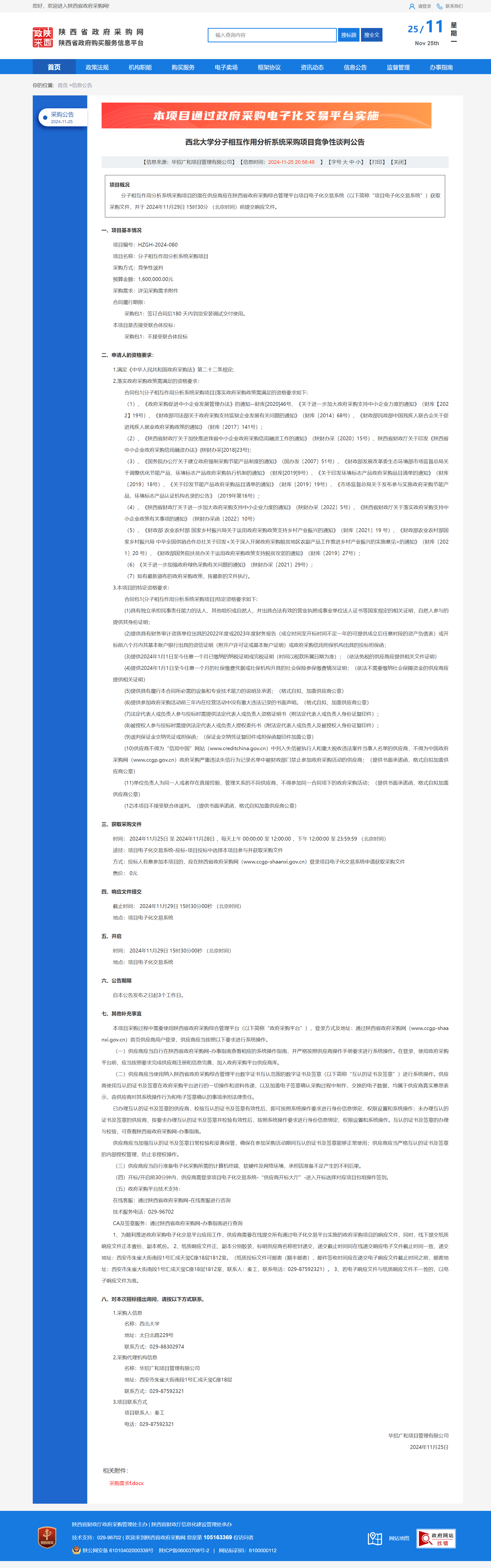 MILAN.COM分子相互作用分析系统采购项目竞争性谈判公告