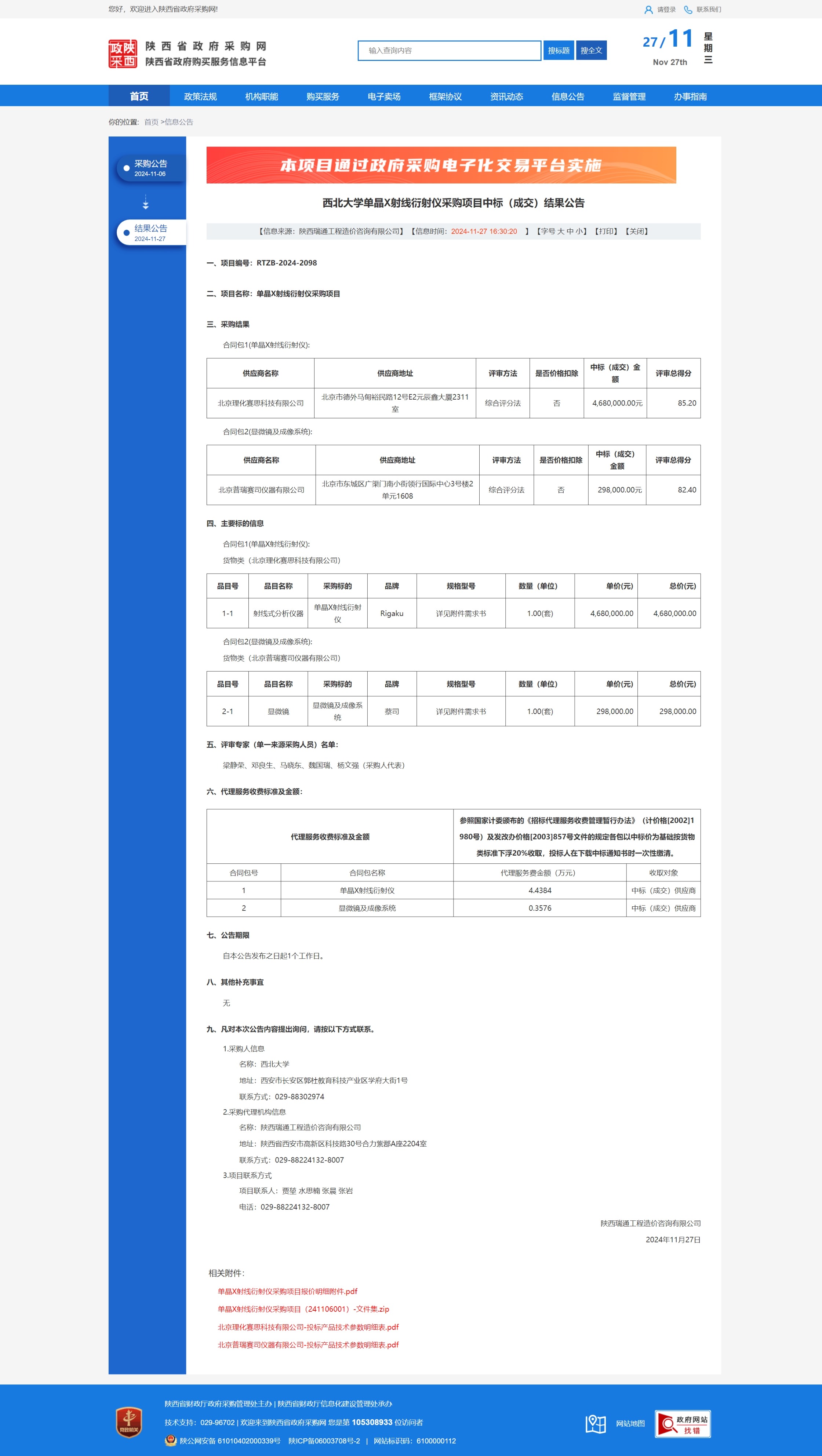 MILAN.COM单晶X射线衍射仪采购项目中标(成交)结果公告 作者: 编辑:薛利娟 时间:2024-11-27 原公告链接:https://www.ccgp-shaanxi.gov.cn/freecms/site/shaanxi/ggxx/info/2024/8a69c2519218573701936c9dc8b83cb3.html?noticeType=001021¬iceId=6e7a9363-ac9b-11ef-8063-08c0eb20c666