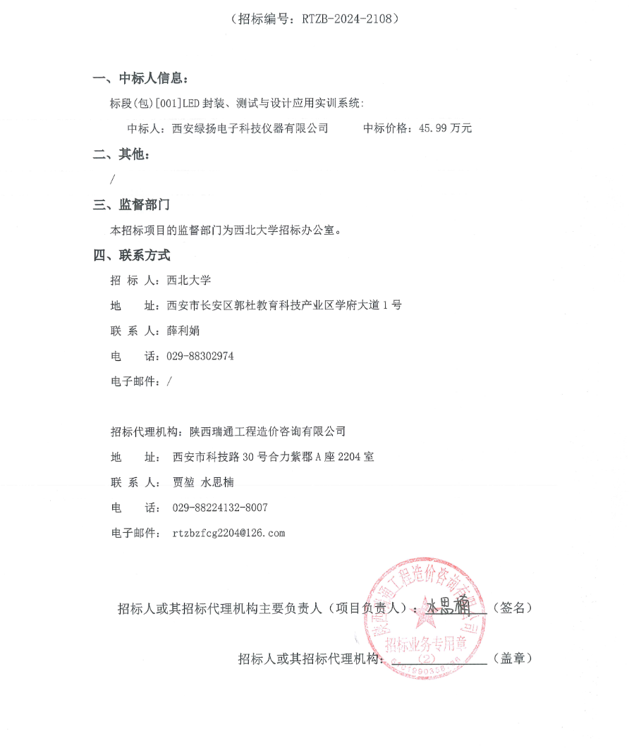 MILAN.COMLED封装、测试与设计应用实训系统采购项目成交结果公告 作者: 编辑:薛利娟 时间:2024-11-28 原公告链接:http://bulletin.sntba.com/resultBulletin/2024-11-28/1990146.html