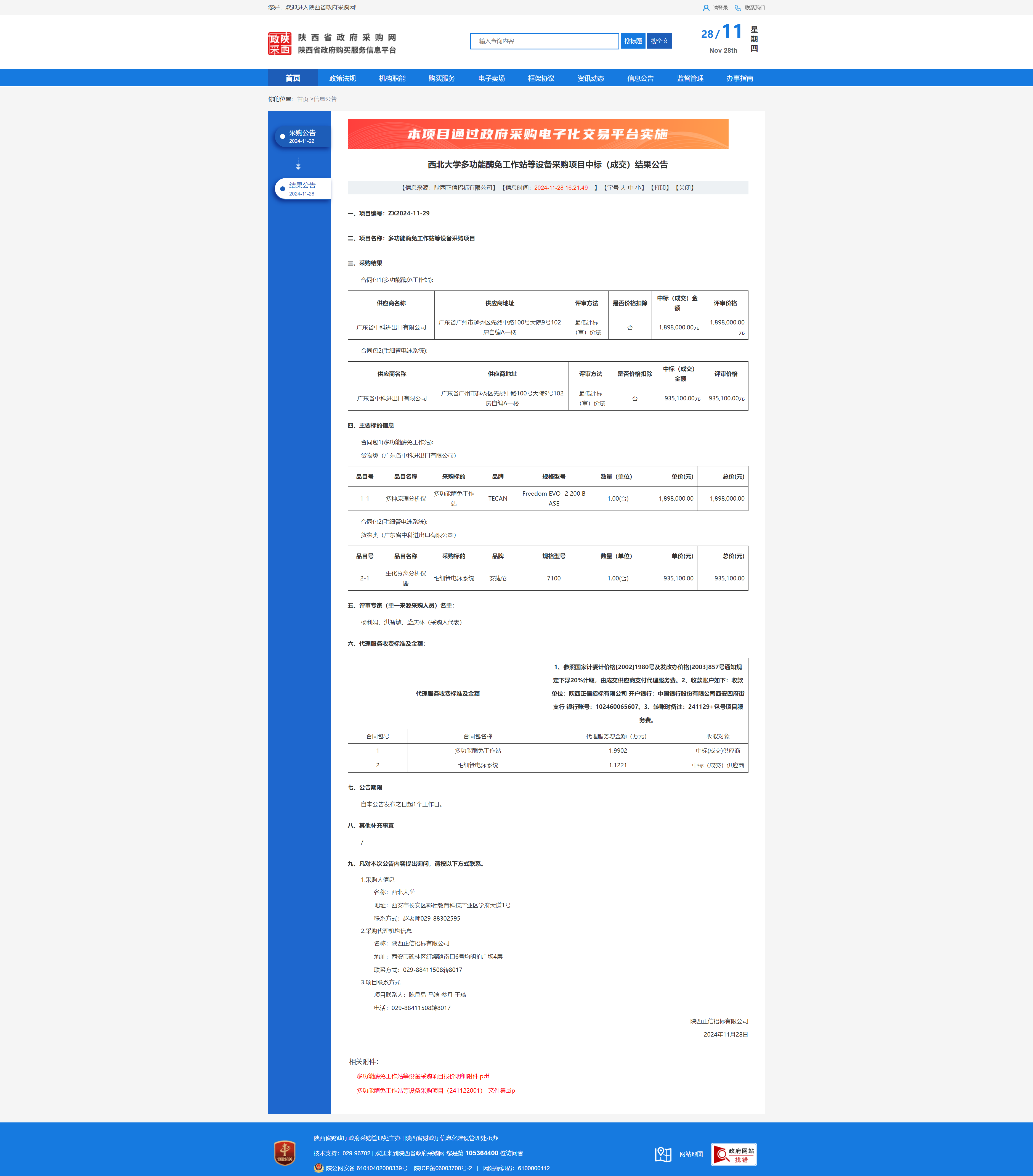 MILAN.COM多功能酶免工作站等设备采购项目中标(成交)结果公告