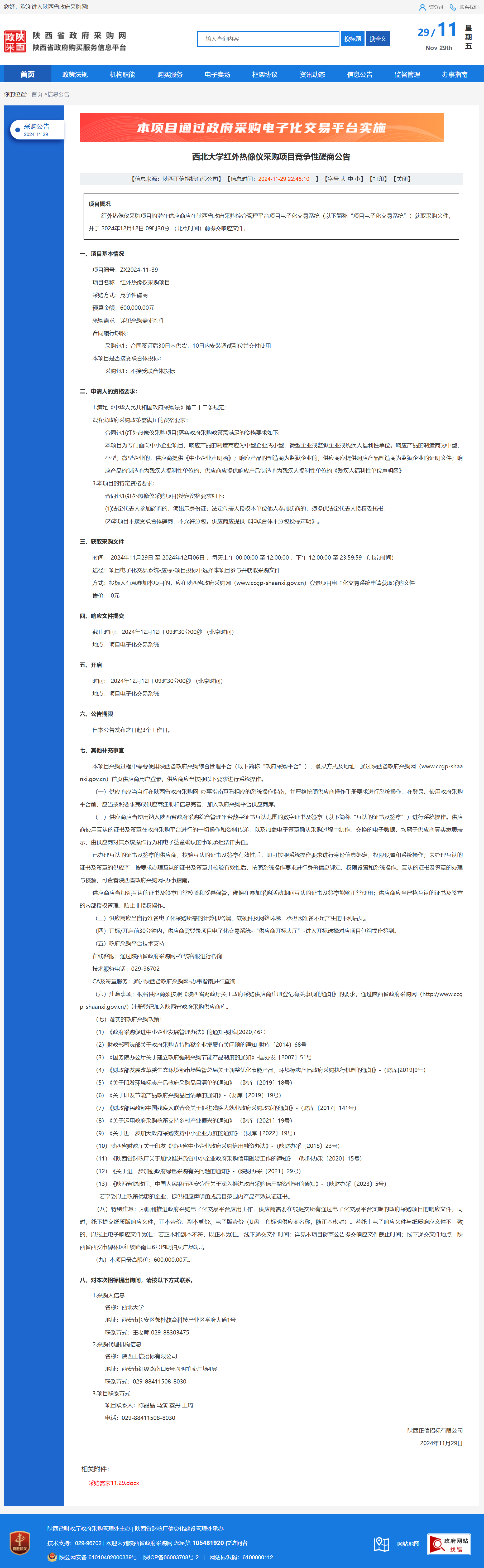 MILAN.COM红外热像仪采购项目竞争性磋商公告 作者:采购与招标办公室 编辑: 时间:2024-11-29 原公告链接:http://www.ccgp-shaanxi.gov.cn/freecms/site/shaanxi/ggxx/info/2024/8a69c25192185737019378563f514743.html?noticeType=001016¬iceId=8c82e43c-ae62-11ef-8063-08c0eb20c666