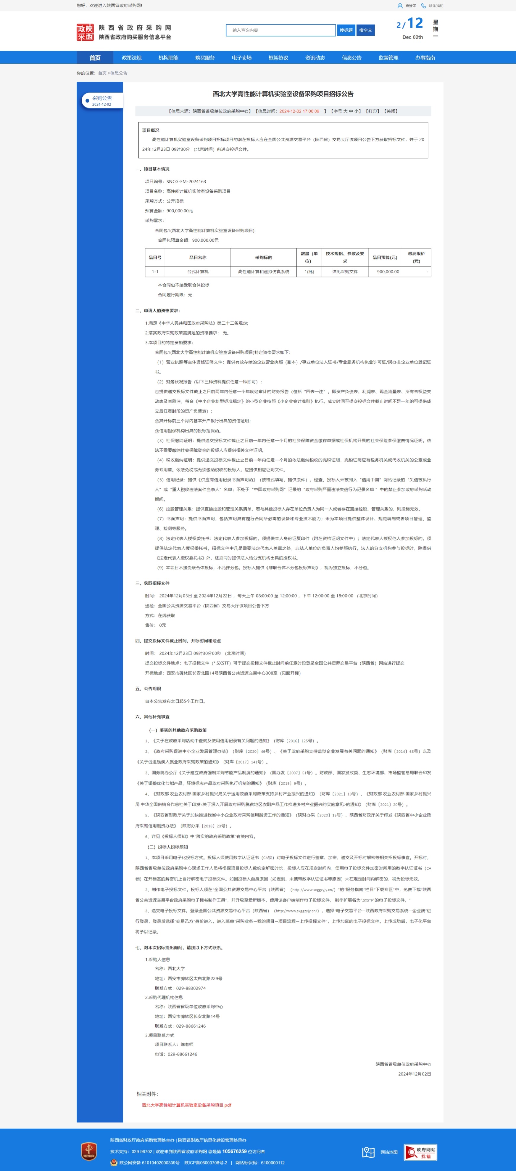 MILAN.COM高性能计算机实验室设备采购项目招标公告 作者: 编辑:薛利娟 时间:2024-12-02 原公告链接:https://www.ccgp-shaanxi.gov.cn/freecms/site/shaanxi/ggxx/info/2024/8a69c95d921859f0019385fa52aa33e9.html?noticeType=001011¬iceId=6ee78a15-b08d-11ef-8063-08c0eb20c666