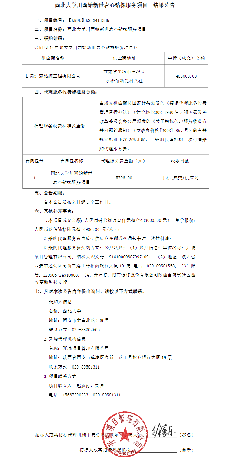 MILAN.COM西安市古生物信息学重点实验室岩芯钻取服务项目结果公告