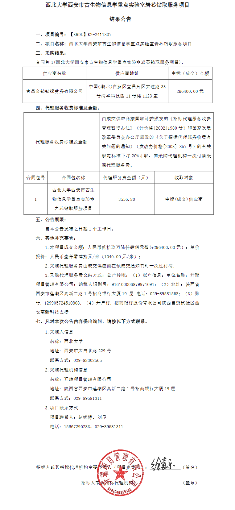 MILAN.COM西安市古生物信息学重点实验室岩芯钻取服务项目结果公告