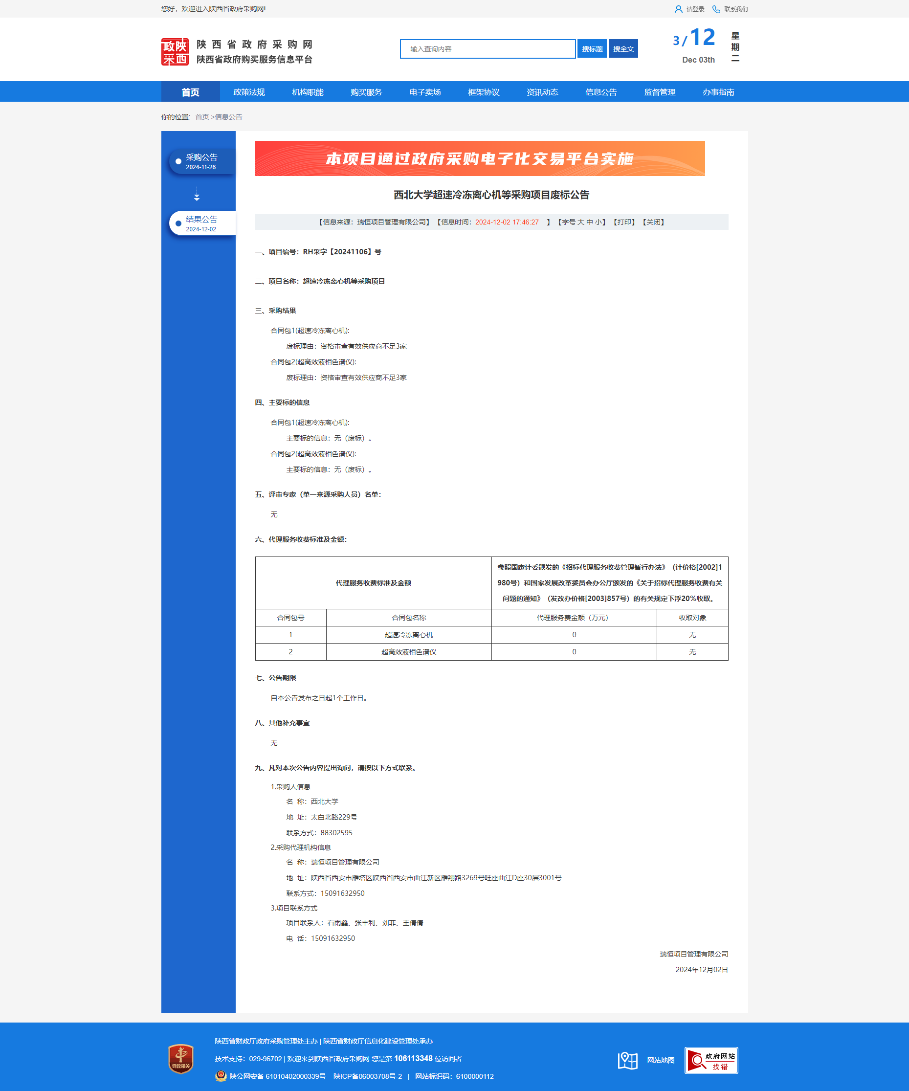 MILAN.COM超速冷冻离心机等采购项目废标公告