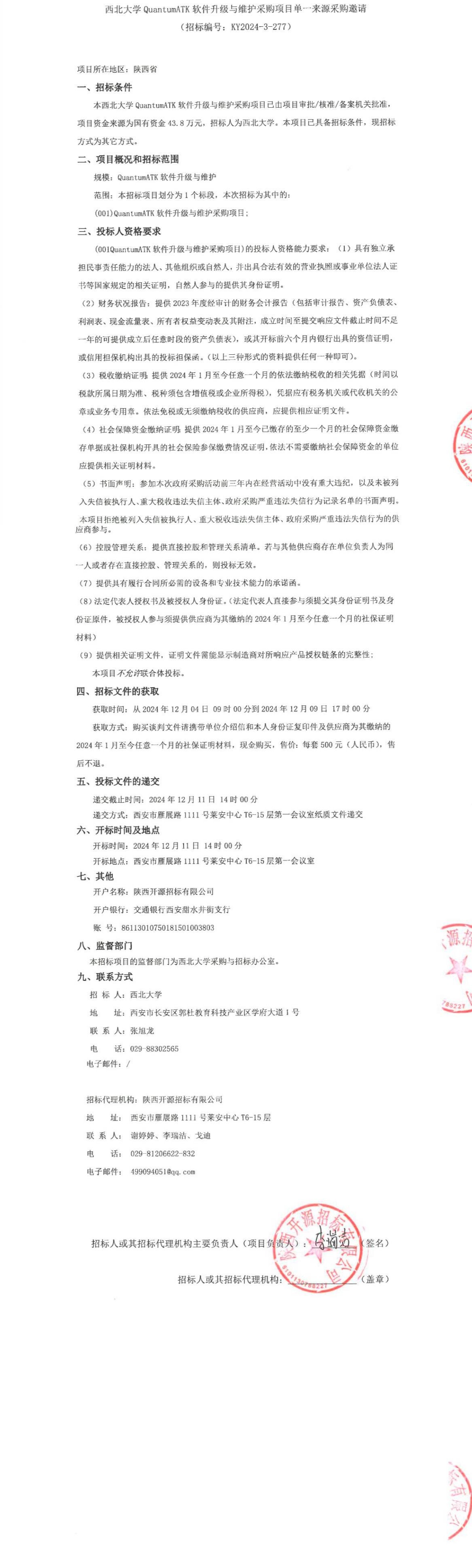 MILAN.COMQuantumATK软件升级与维护采购项目单一来源采购邀请