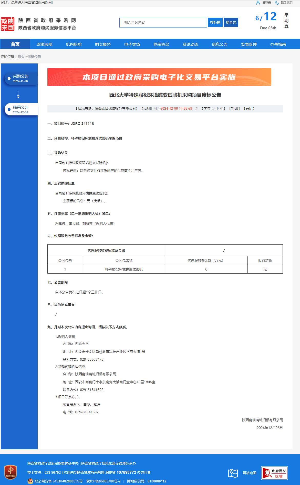 MILAN.COM特殊服役环境蠕变试验机采购项目废标公告 作者:采购与招标办公室 编辑: 时间:2024-12-06 原公告链接:https://www.ccgp-shaanxi.gov.cn/freecms/site/shaanxi/ggxx/info/2024/8a69c95d921859f001939aa5154c08a7.html?noticeType=001006¬iceId=c1cb7312-b3a0-11ef-8063-08c0eb20c666