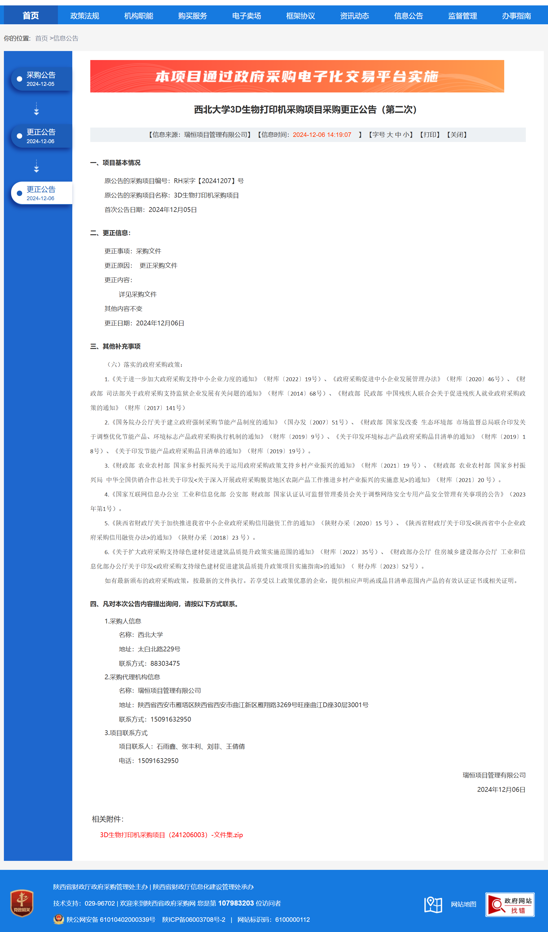 MILAN.COM3D生物打印机采购项目采购更正公告(第二次) 作者:采购与招标办公室 编辑: 时间:2024-12-06 原公告链接:https://www.ccgp-shaanxi.gov.cn/freecms/site/shaanxi/ggxx/info/2024/8a69c5a59218576d01939a447c2a1448.html?noticeType=001031¬iceId=9bb5c25d-b39b-11ef-8063-08c0eb20c666