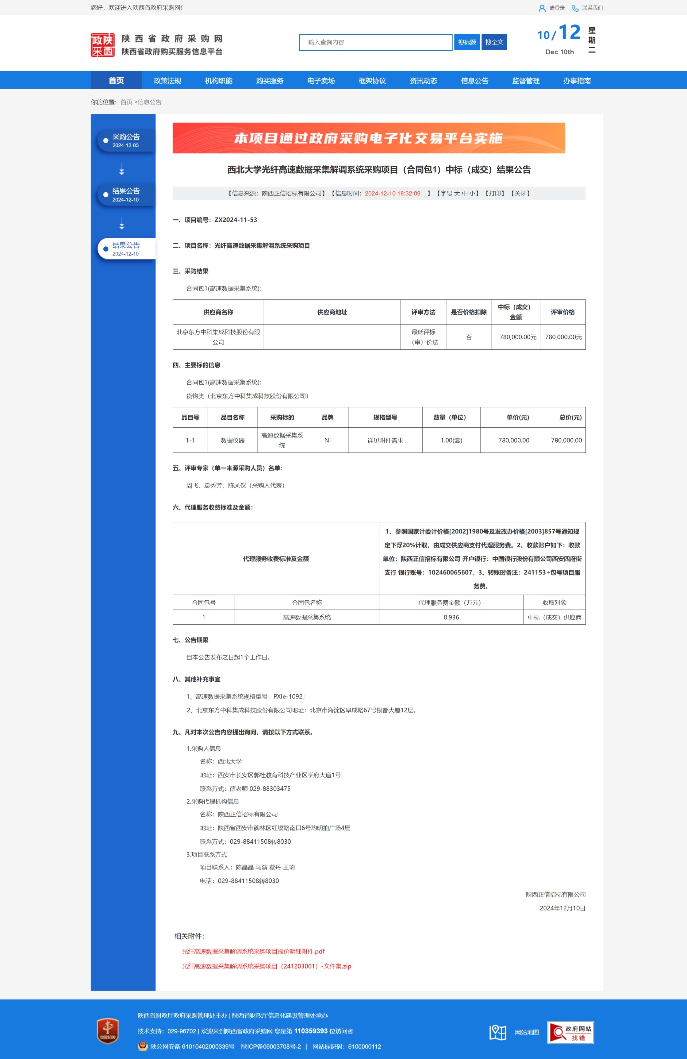 MILAN.COM光纤高速数据采集解调系统采购项目(合同包1)中标(成交)结果公告 作者: 编辑:薛利娟 时间:2024-12-10 原公告链接:https://www.ccgp-shaanxi.gov.cn/freecms/site/shaanxi/ggxx/info/2024/8a69c5a59218576d0193afdcc6a35b7a.html?noticeType=001023¬iceId=a08120c5-b6e3-11ef-8063-08c0eb20c666