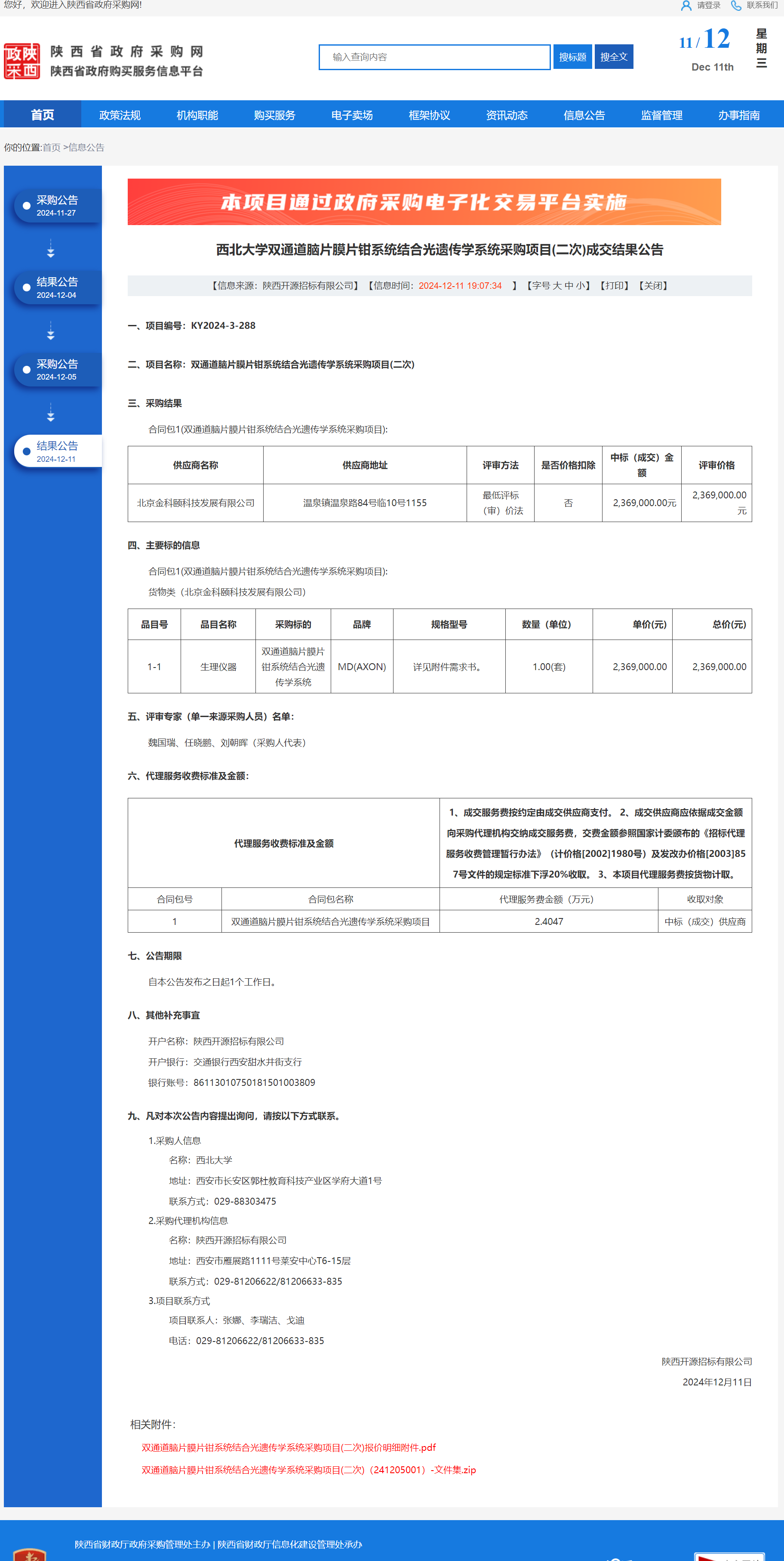 MILAN.COM双通道脑片膜片钳系统结合光遗传学系统采购项目(二次)成交结果公告 作者:采购与招标办公室 编辑: 时间:2024-12-11 原公告链接:https://www.ccgp-shaanxi.gov.cn/freecms/site/shaanxi/ggxx/info/2024/8a69c5a59218576d0193b551fa0d60e2.html?noticeType=001023¬iceId=be41a2eb-b7b1-11ef-8063-08c0eb20c666
