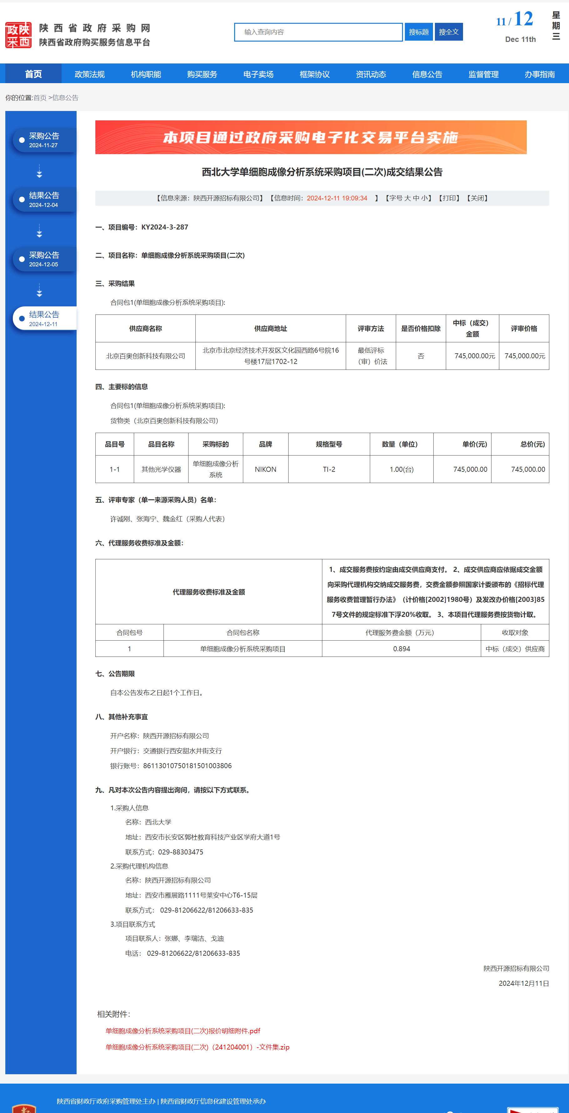 MILAN.COM单细胞成像分析系统采购项目(二次)成交结果公告 作者:采购与招标办公室 编辑: 时间:2024-12-11 原公告链接:https://www.ccgp-shaanxi.gov.cn/freecms/site/shaanxi/ggxx/info/2024/8a69c44e9218572b0193b5573fe75fde.html?noticeType=001023¬iceId=05c7792c-b7b2-11ef-8063-08c0eb20c666