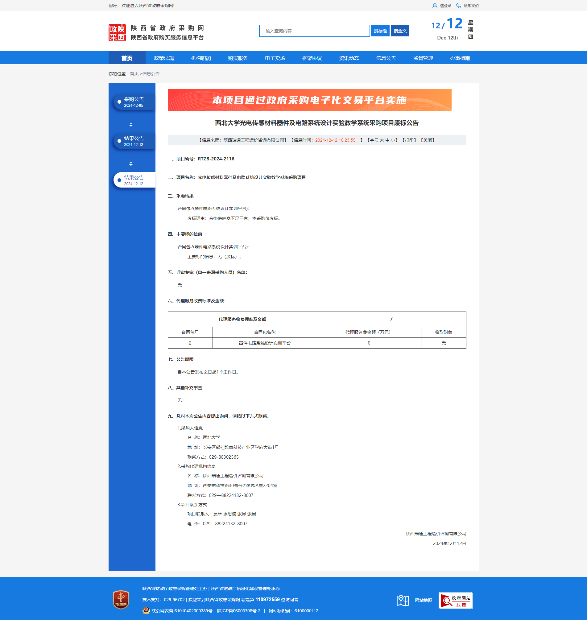 MILAN.COM光电传感材料器件及电路系统设计实验教学系统采购项目中标(成交)结果公告