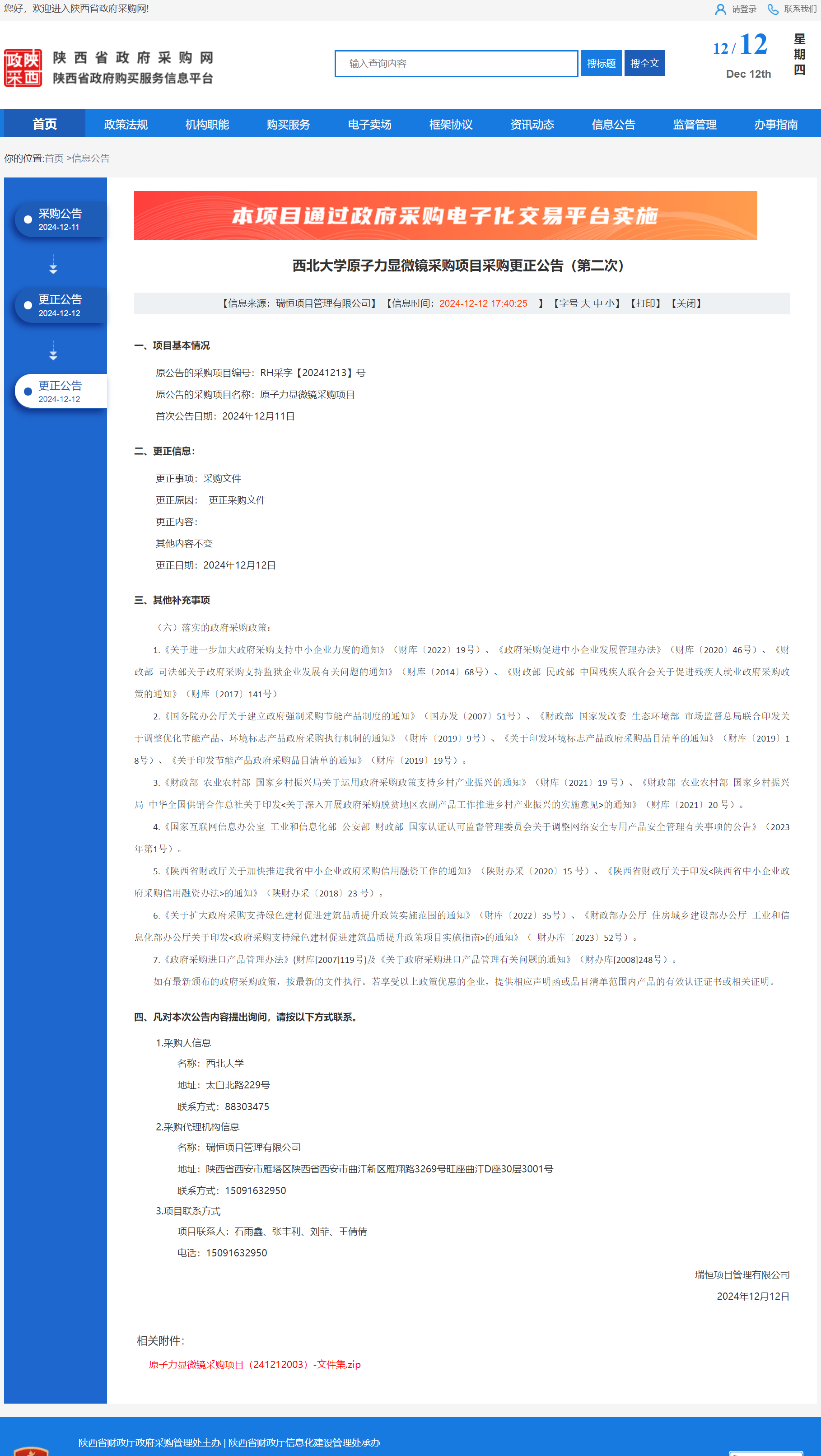 MILAN.COM原子力显微镜采购项目采购更正公告(第二次) 作者:采购与招标办公室 编辑: 时间:2024-12-12 原公告链接:https://www.ccgp-shaanxi.gov.cn/freecms/site/shaanxi/ggxx/info/2024/8a69c5a59218576d0193ba3c419e1460.html?noticeType=001031¬iceId=bbffc791-b86e-11ef-8063-08c0eb20c666