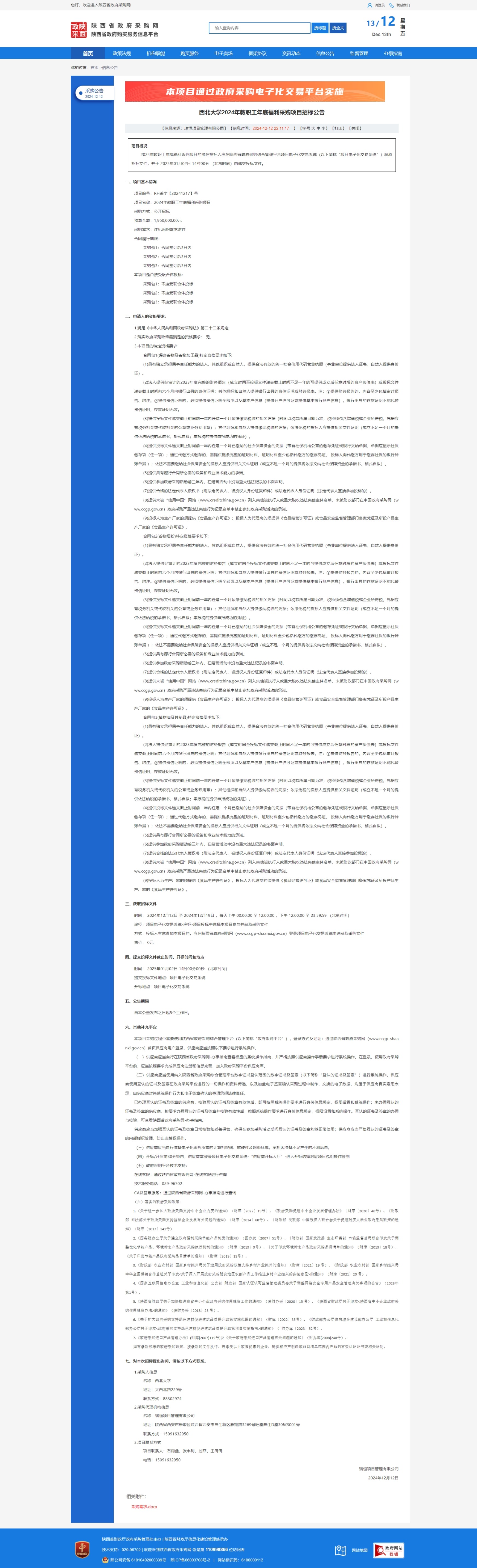 MILAN.COM2024年教职工年底福利采购项目招标公告 作者: 编辑:薛利娟 时间:2024-12-13 原公告链接:https://www.ccgp-shaanxi.gov.cn/freecms/site/shaanxi/ggxx/info/2024/8a69c95d921859f00193bb31dd1c2271.html?noticeType=001011¬iceId=937683d0-b894-11ef-8063-08c0eb20c666