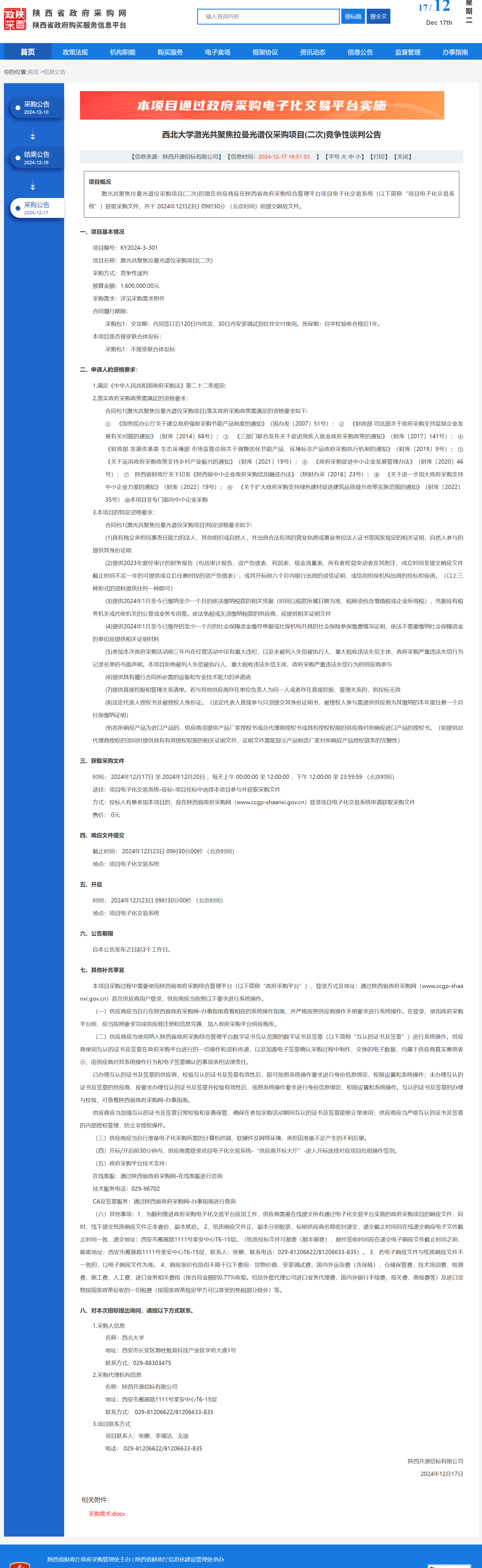 MILAN.COM激光共聚焦拉曼光谱仪采购项目(二次)竞争性谈判公告 作者:采购与招标办公室 编辑: 时间:2024-12-17 原公告链接:https://www.ccgp-shaanxi.gov.cn/freecms/site/shaanxi/ggxx/info/2024/8a69c44e9218572b0193d434f6c730a9.html?noticeType=001013¬iceId=8ed4237e-bc66-11ef-8063-08c0eb20c666